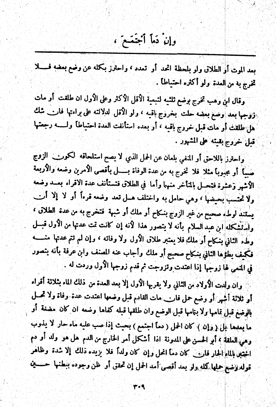 وَإِنْ وَلَدَتْ الْأَوْلَادَ مِنْ الثَّانِي وَلَا يَقْرَبُهَا الْأَوَّلُ إلَّا بَعْدَ الْعِدَّةِ مِنْ ذَلِكَ الْمَاءِ بِثَلَاثَةِ أَقْرَاءَ أَوْ ثَلَاثَةِ أَشْهُرَ أَوْ وَضْعِ حَمْلٍ فَإِنْ مَاتَ الْقَادِمُ قَبْلَ وَضْعِهَا اعْتَدَّتْ عِدَّةَ وَفَاةٍ وَلَا تَحِلُّ بِالْوَضْعِ قَبْلَ تَمَامِهَا وَلَا بِتَمَامِهَا قَبْلَ الْوَضْعِ وَإِنْ طَلَّقَهَا قَبْلَهُ كَفَاهَا وَضْعُهُ إنْ كَانَ مُضْغَةً أَوْ مَا بَعْدَهَا بَلْ (وَإِنْ) كَانَ الْحَمْلُ (دَمًا اجْتَمَعَ) بِحَيْثُ إذَا صُبَّ عَلَيْهِ مَاءٌ حَارٌّ لَا يَذُوبُ وَهِيَ الْعَلَقَةُ أَبُو الْحَسَنِ عَلَى الْمُدَوَّنَةِ إذَا أَشْكَلَ أَمْرُ الْخَارِجِ مِنْ الدَّمِ هَلْ هُوَ وَلَدٌ أَوْ دَمٌ اُخْتُبِرَ بِالْمَاءِ الْحَارِّ فَإِنْ كَانَ دَمًا انْحَلَّ وَإِنْ كَانَ وَلَدًا فَلَا يَزِيدُهُ ذَلِكَ إلَّا شِدَّةً وَظَاهِرُ قَوْلِهِ: وَضْعُ حَمْلِهَا كُلِّهِ وَلَوْ بَعْدَ أَقْصَى أَمَدِ الْحَمْلِ إنْ تَحَقَّقَ أَوْ ظُنَّ وُجُودُهُ بِبَطْنِهَا حِينَ
