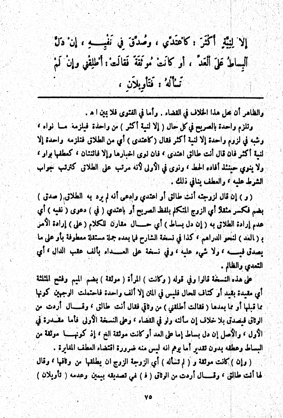 عَلَى هَذِهِ النُّسْخَةِ قَالُوا وَفِي قَوْلِهِ (وَكَانَتْ) الْمَرْأَةُ (مُوثَقَةً) بِضَمِّ الْمِيمِ وَفَتْحِ الْمُثَلَّثَةِ أَيْ مُقَيَّدَةً بِقَيْدٍ أَوْ كِتَافٍ لِلْحَالِ فَلَيْسَ فِي الْمَتْنِ إلَّا أَلِفٌ وَاحِدَةٌ فَاحْتَمَلَتْ الْوَجْهَيْنِ كَوْنُهَا مِمَّا قَبْلَهَا أَوْ مِمَّا بَعْدَهَا (فَقَالَتْ أَطْلِقْنِي) مِنْ وِثَاقِي فَقَالَ أَنْتِ طَالِقٌ، وَقَالَ أَرَدْت مِنْ الْوَثَاقِ فَيُصَدَّقُ بِلَا خِلَافٍ إنْ سَأَلَتْهُ وَلَوْ فِي الْقَضَاءِ، وَعَلَى النُّسْخَةِ الْأُولَى فَإِمَّا مَقْدِرَةٌ فِي الْأَوَّلِ، وَالْأَصْلُ إنْ دَلَّ بِسَاطٌ إمَّا عَلَى الْعَدِّ أَوْ كَانَتْ مُوثَقَةً إلَخْ، إذْ كَوْنُهَا مُوثَقَةً مِنْ الْبِسَاطِ وَعَطْفُهُ بِدُونِ تَقْدِيرٍ إمَّا يُوهِمُ أَنَّهُ لَيْسَ مِنْهُ ضَرُورَةُ اقْتِضَاءِ الْعَطْفِ الْمُغَايِرَةَ.