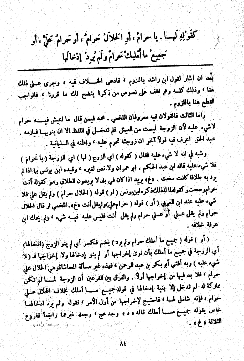 عَبْدُ الْحَقِّ أَعْرِفُ فِيهِ قَوْلًا آخَرَ أَنَّ زَوْجَتَهُ تَحْرُمُ عَلَيْهِ، وَأَظُنُّهُ فِي السُّلَيْمَانِيَّةِ.