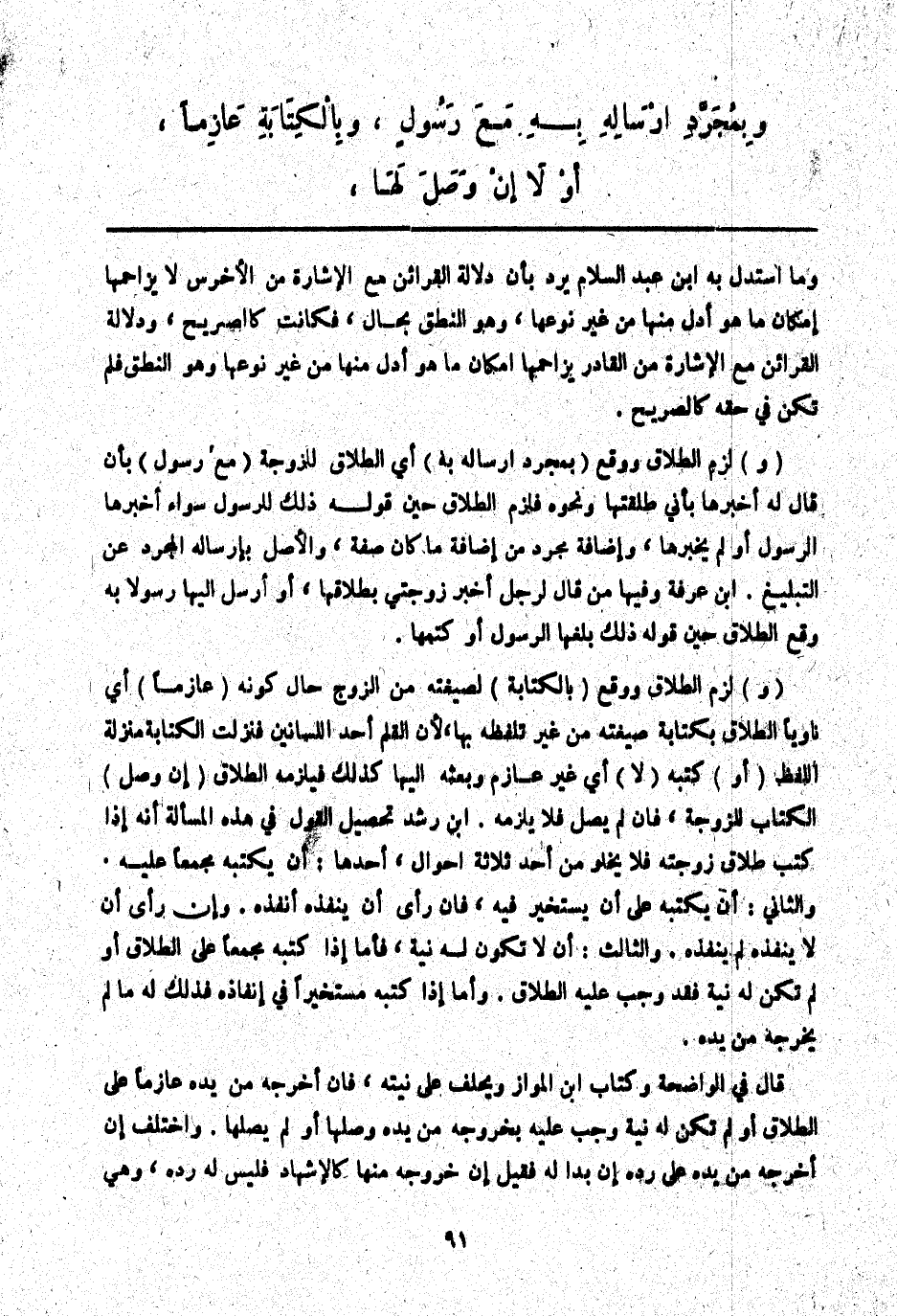 (وَ) لَزِمَ الطَّلَاقُ وَوَقَعَ (بِالْكِتَابَةِ) لِصِيغَتِهِ مِنْ الزَّوْجِ حَالَ كَوْنِهِ (عَازِمًا) أَيْ نَاوِيًا الطَّلَاقَ بِكِتَابَةِ صِيغَتِهِ مِنْ غَيْرِ تَلَفُّظِهِ بِهَا لِأَنَّ الْقَلَمَ أَحَدُ اللِّسَانَيْنِ فَنُزِّلَتْ الْكِتَابَةُ مَنْزِلَةَ اللَّفْظِ (أَوْ) كَتَبَهُ (لَا) أَيْ غَيْرَ عَازِمٍ وَبَعَثَهُ إلَيْهَا كَذَلِكَ فَيَلْزَمُهُ الطَّلَاقُ (إنْ وَصَلَ) الْكِتَابُ لِلزَّوْجَةِ، فَإِنْ لَمْ يَصِلْ فَلَا يَلْزَمُهُ. ابْنُ رُشْدٍ تَحْصِيلُ الْقَوْلِ فِي هَذِهِ الْمَسْأَلَةِ أَنَّهُ إذَا كَتَبَ طَلَاقَ زَوْجَتِهِ فَلَا يَخْلُو مِنْ أَحَدِ ثَلَاثَةِ أَحْوَالٍ، أَحَدُهَا: أَنْ يَكْتُبَهُ مُجْمِعًا عَلَيْهِ. وَالثَّانِي: أَنْ يَكْتُبَهُ عَلَى أَنْ يَسْتَخِيرَ فِيهِ، فَإِنْ رَأَى أَنْ يُنْفِذَهُ أَنْفَذَهُ. وَإِنْ رَأَى أَنْ لَا يُنْفِذَهُ لَمْ يُنْفِذْهُ. وَالثَّالِثُ: أَنْ لَا تَكُونَ لَهُ نِيَّةٌ، فَأَمَّا إذَا كَتَبَهُ مُجْمِعًا عَلَى الطَّلَاقِ أَوْ لَمْ تَكُنْ لَهُ نِيَّةٌ فَقَدْ وَجَبَ عَلَيْهِ الطَّلَاقُ. وَأَمَّا إذَا كَتَبَهُ مُسْتَخِيرًا فِي إنْفَاذِهِ فَذَلِكَ لَهُ مَا لَمْ يُخْرِجْهُ مِنْ يَدِهِ.