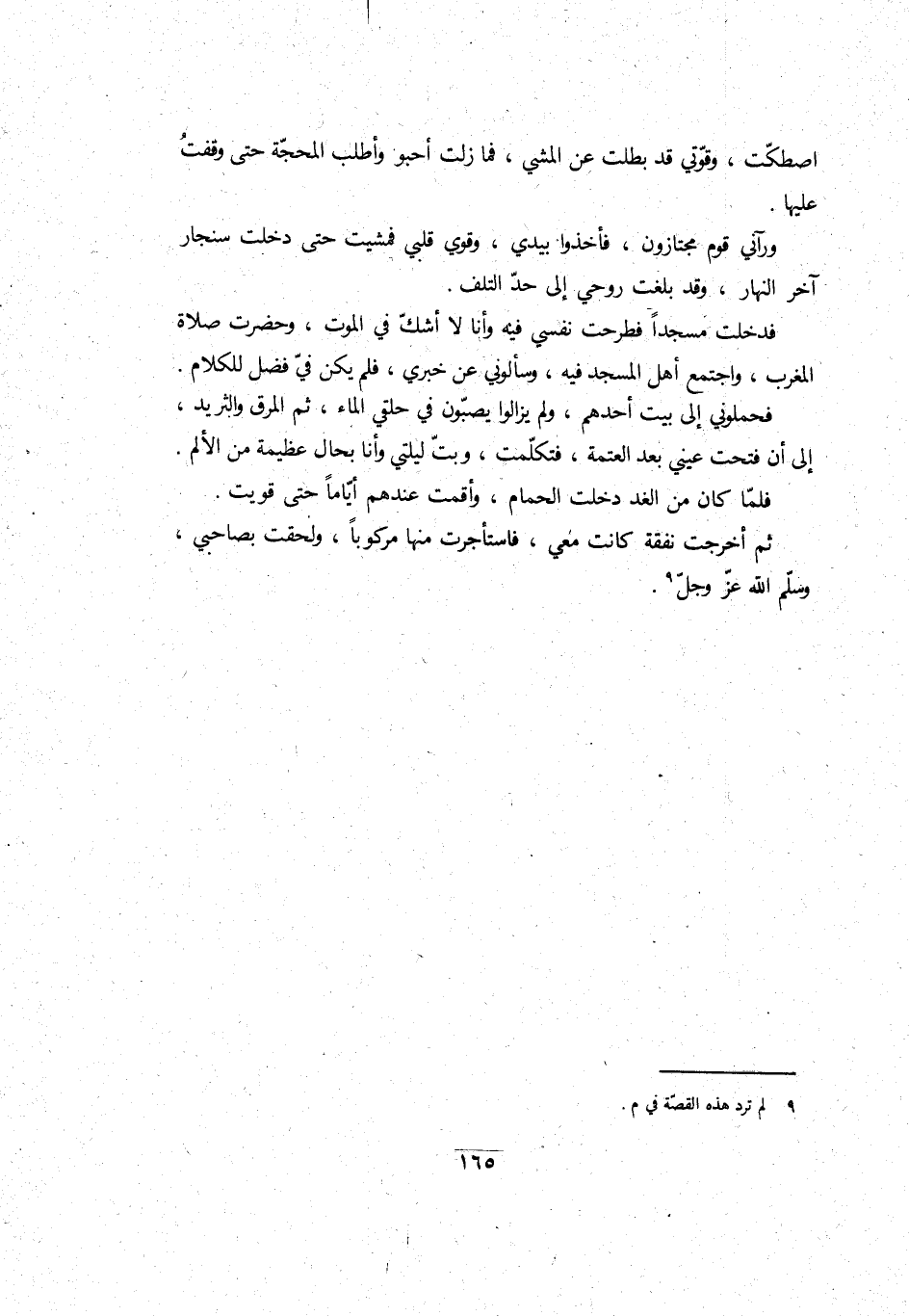 ورآني قوم مجتازون، فَأخذُوا بيَدي، وَقَوي قلبِي فمشيت حَتَّى دخلت سنجار آخر النَّهَار، وَقد بلغت روحي إِلَى حد التّلف.