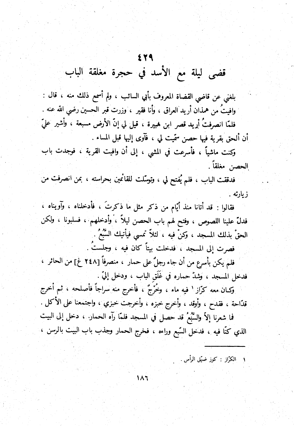 وَكنت مَاشِيا، فأسرعت فِي الْمَشْي، إِلَى أَن وافيت الْقرْيَة، فَوجدت بَاب الْحصن مغلقًا.