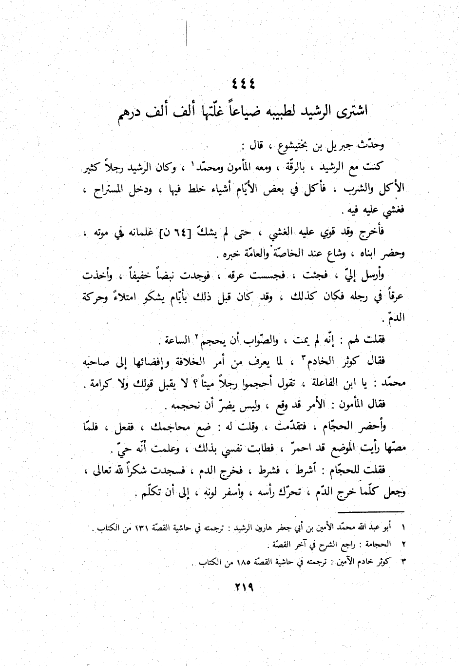 اشْترى الرشيد لطبيبه ضيَاعًا غَلَّتهَا ألف ألف دِرْهَم