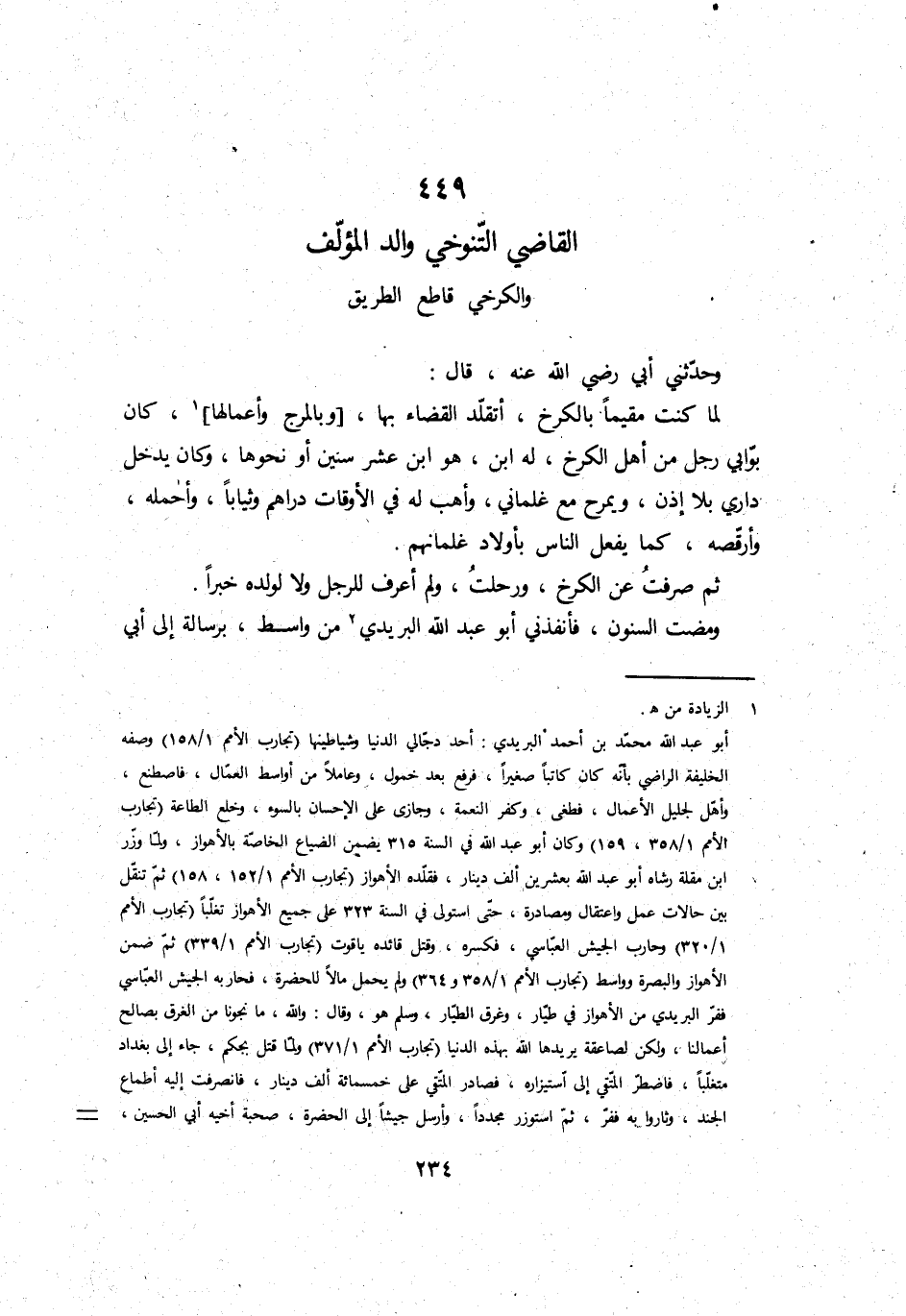 القَاضِي التنوخي وَالِد الْمُؤلف والكرخي قَاطع الطَّرِيق