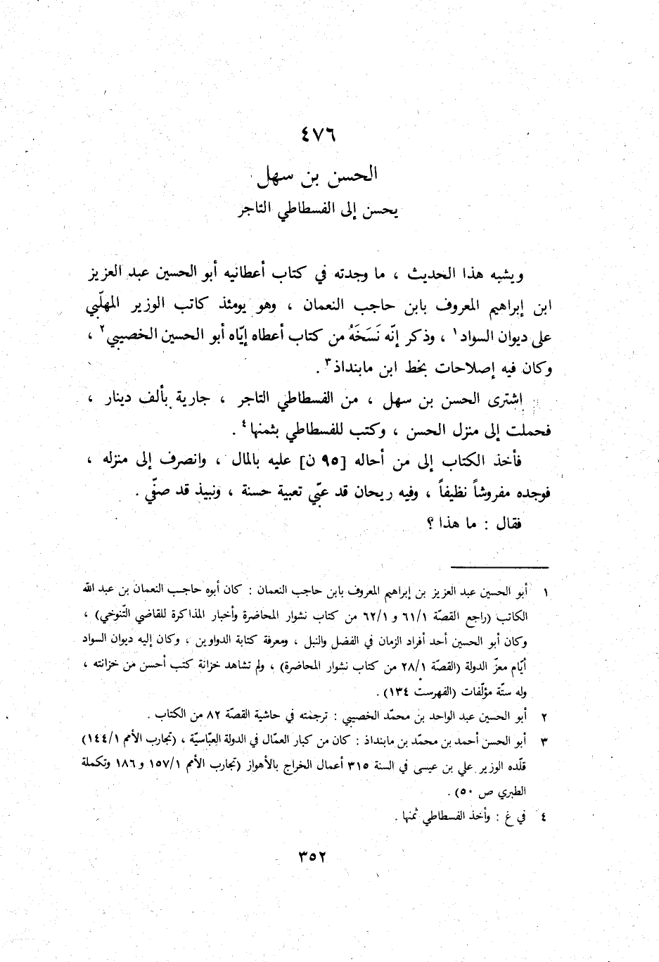 الْحسن بن سهل يحسن إِلَى الفسطاطي التَّاجِر