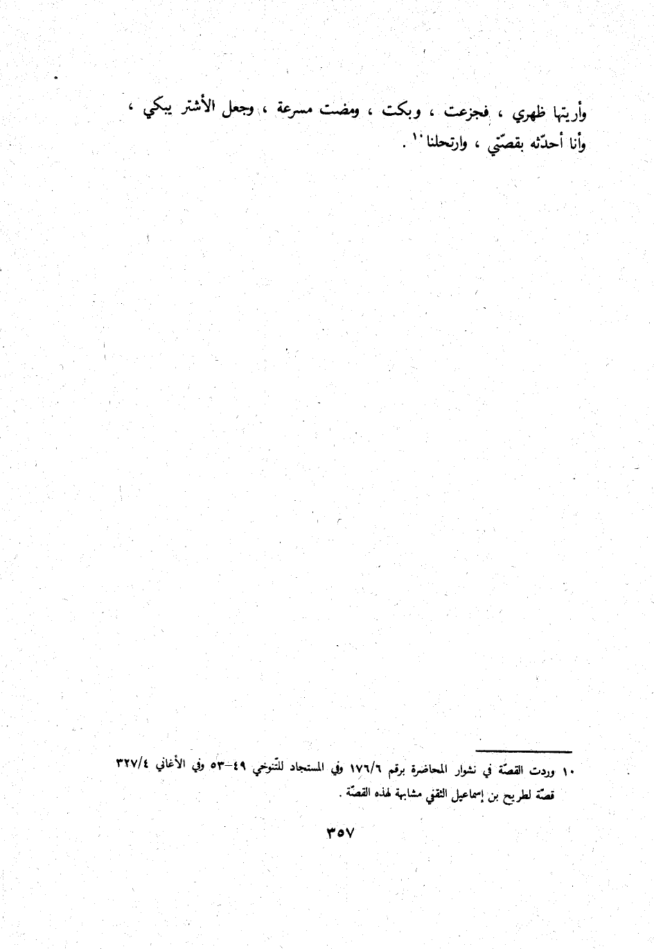 وأريتها ظَهْري، فَجَزِعت، وبكت، وَمَضَت مسرعة، وَجعل الأشتر يبكي، وَأَنا أحدثه بقصتي، وارتحلنا.