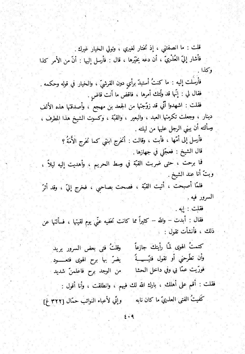 فَقَالَ: أبدت، وَالله، كثيرا مِمَّا كَانَت تخفيه عني يَوْم لقيتها، فسألتها عَن ذَلِك، فأنشأت تَقول: