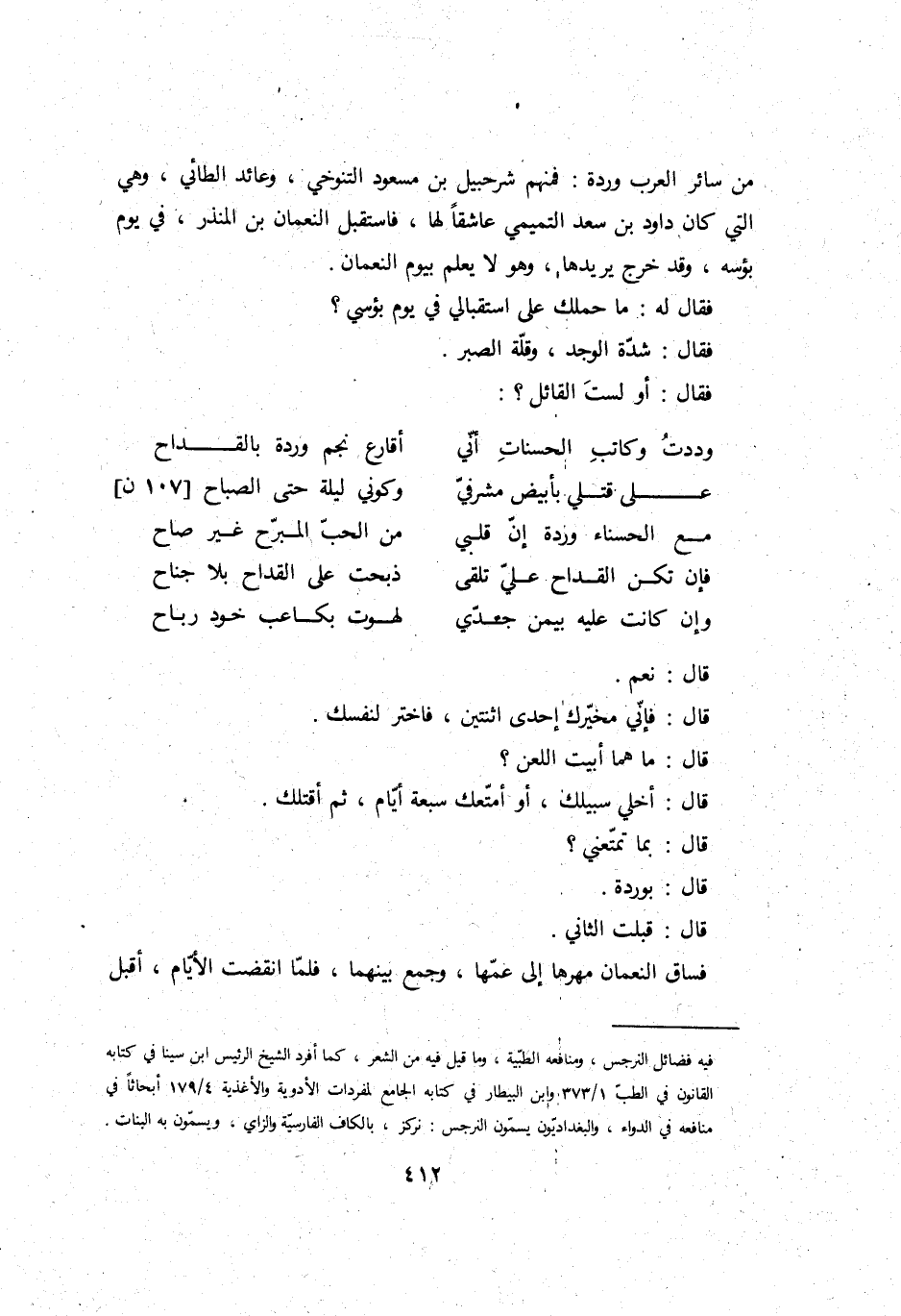 من سَائِر الْعَرَب وردة: فَمنهمْ شُرَحْبِيل بن مَسْعُود التنوخي، وعائد الطَّائِي، وَهِي الَّتِي كَانَ دَاوُد بن سعد التَّمِيمِي عَاشِقًا لَهَا، فَاسْتقْبل النُّعْمَان بن الْمُنْذر، فِي يَوْم بؤسه، وَقد خرج يريدها، وَهُوَ لَا يعلم بِيَوْم النُّعْمَان.