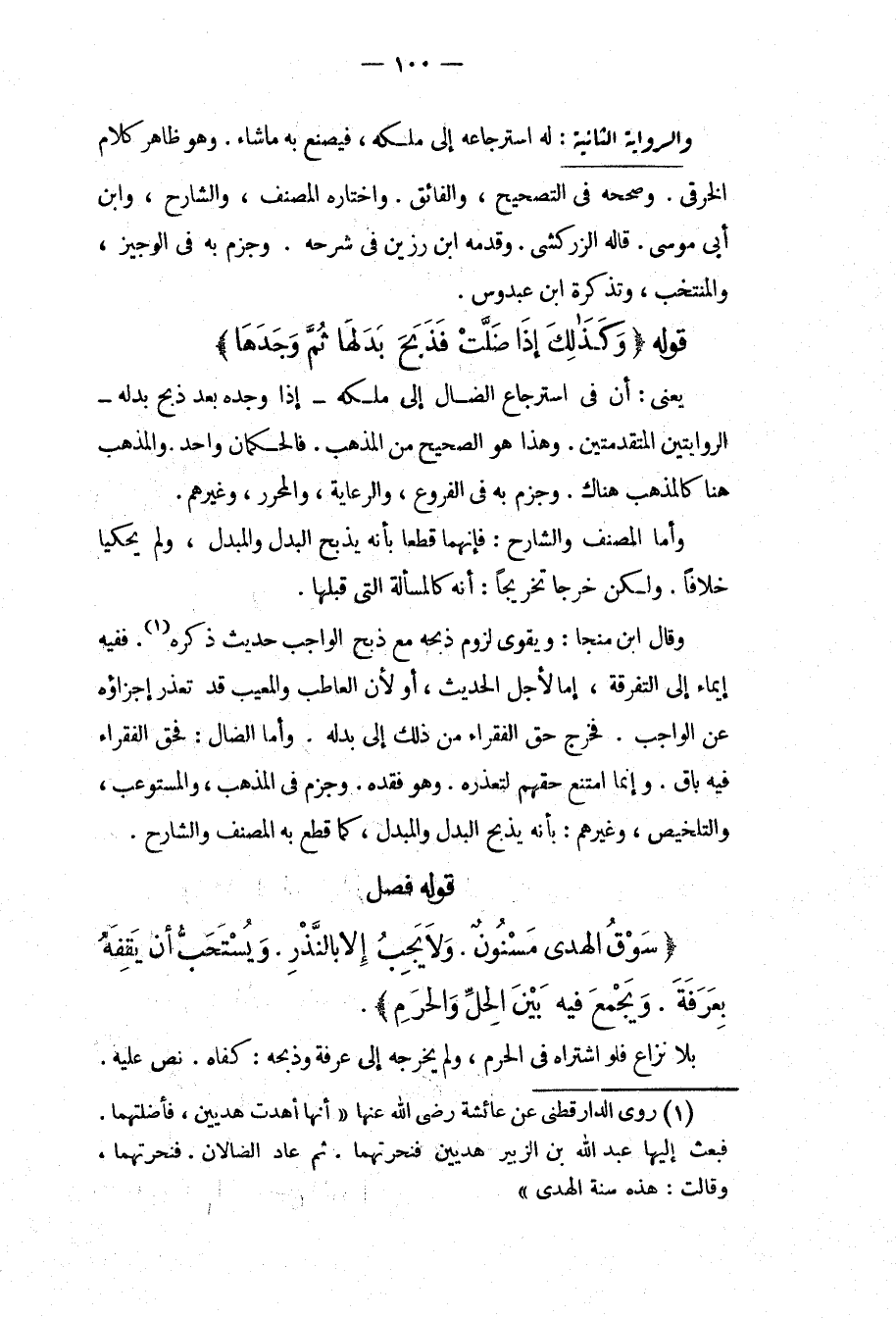 الرِّوَايَةُ الثَّانِيَةُ: لَهُ اسْتِرْجَاعُهُ إلَى مِلْكِهِ، فَيَصْنَعُ بِهِ مَا شَاءَ وَهُوَ ظَاهِرُ كَلَامِ الْخِرَقِيِّ وَصَحَّحَهُ فِي التَّصْحِيحِ، وَالْفَائِقِ وَاخْتَارَهُ الْمُصَنِّفُ، وَالشَّارِحُ، وَابْنُ أَبِي مُوسَى قَالَهُ الزَّرْكَشِيُّ وَقَدَّمَهُ ابْنُ رَزِينٍ فِي شَرْحِهِ وَجَزَمَ بِهِ فِي الْوَجِيزِ، وَالْمُنْتَخَبِ، وَتَذْكِرَةِ ابْنِ عَبْدُوسٍ قَوْلُهُ (كَذَلِكَ إذَا ضَلَّتْ فَذَبَحَ بَدَلَهَا ثُمَّ وَجَدَهَا) يَعْنِي: أَنَّ فِي اسْتِرْجَاعِ الضَّالِّ إلَى مِلْكِهِ إذَا وَجَدَهُ بَعْدَ ذَبْحِ بَدَلِهِ