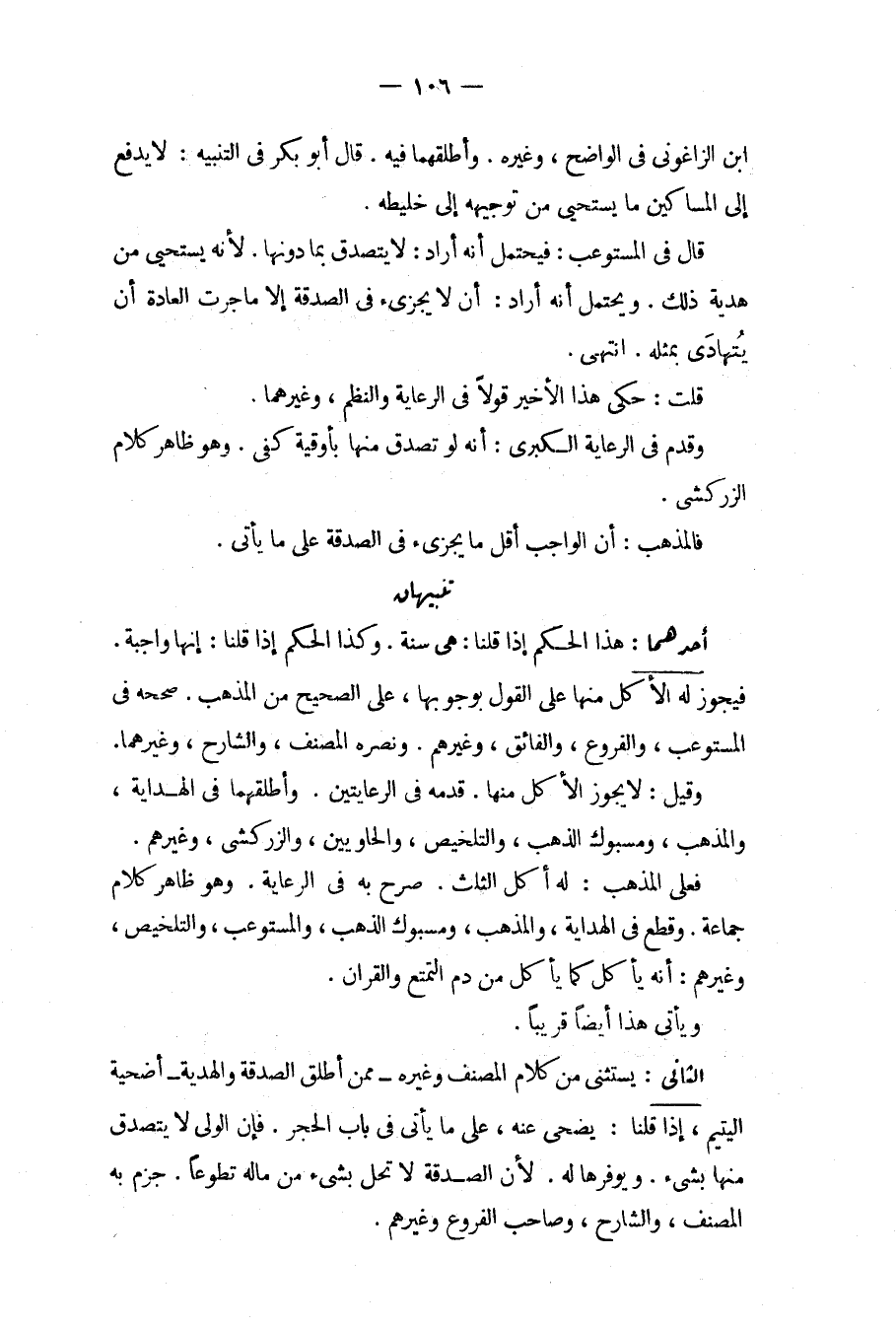 ابْنُ الزَّاغُونِيِّ فِي الْوَاضِحِ، وَغَيْرُهُ. وَأَطْلَقَهُمَا فِيهِ. قَالَ أَبُو بَكْرٍ فِي التَّنْبِيهِ: لَا يَدْفَعُ إلَى الْمَسَاكِينِ مَا يَسْتَحْيِي مِنْ تَوْجِيهِهِ إلَى خَلِيطِهِ. قَالَ فِي الْمُسْتَوْعِبِ: فَيُحْتَمَلُ أَنَّهُ أَرَادَ: لَا يَتَصَدَّقُ بِمَا دُونَهَا. لِأَنَّهُ يَسْتَحْيِي مِنْ هَدِيَّةِ ذَلِكَ. وَيَحْتَمِلُ أَنَّهُ أَرَادَ: أَنْ لَا يُجْزِئَ فِي الصَّدَقَةِ إلَّا مَا جَرَتْ الْعَادَةُ أَنْ يُتَهَادَى بِمِثَالِهِ. انْتَهَى. قُلْت: حُكِيَ هَذَا الْأَخِيرُ قَوْلًا فِي الرِّعَايَةِ وَالنَّظْمِ، وَغَيْرِهِمَا. وَقَدَّمَ فِي الرِّعَايَةِ الْكُبْرَى: أَنَّهُ لَوْ تَصَدَّقَ مِنْهَا بِأُوقِيَّةٍ كَفَى. وَهُوَ ظَاهِرُ كَلَامِ الزَّرْكَشِيّ. فَالْمَذْهَبُ: أَنَّ الْوَاجِبَ أَقَلُّ مَا يُجْزِئُ فِي الصَّدَقَةِ عَلَى مَا يَأْتِي.