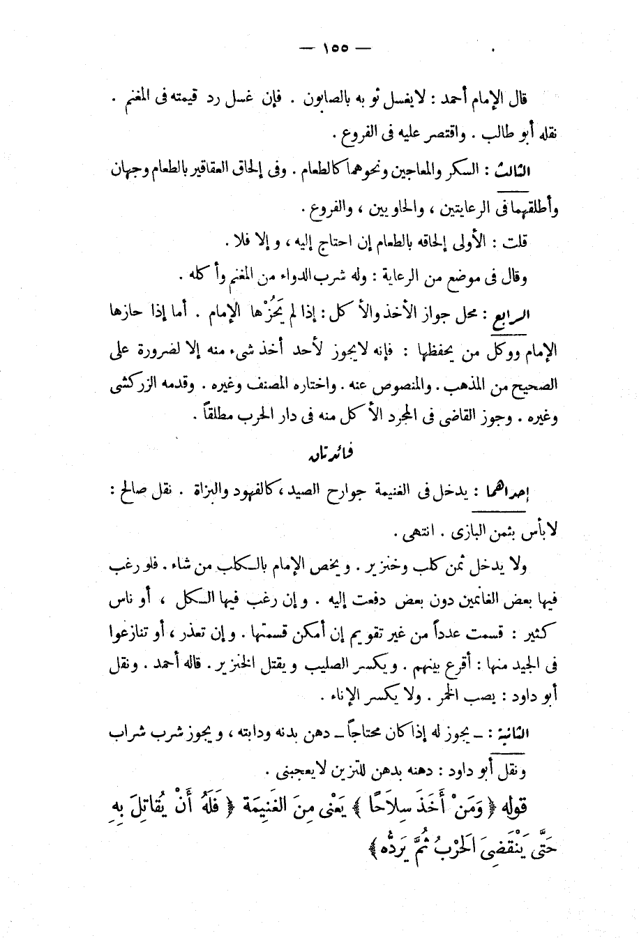 قَالَ الْإِمَامُ أَحْمَدُ: لَا يَغْسِلُ ثَوْبَهُ بِالصَّابُونِ. فَإِنْ غَسَلَ رَدَّ قِيمَتَهُ فِي الْمَغْنَمِ.
