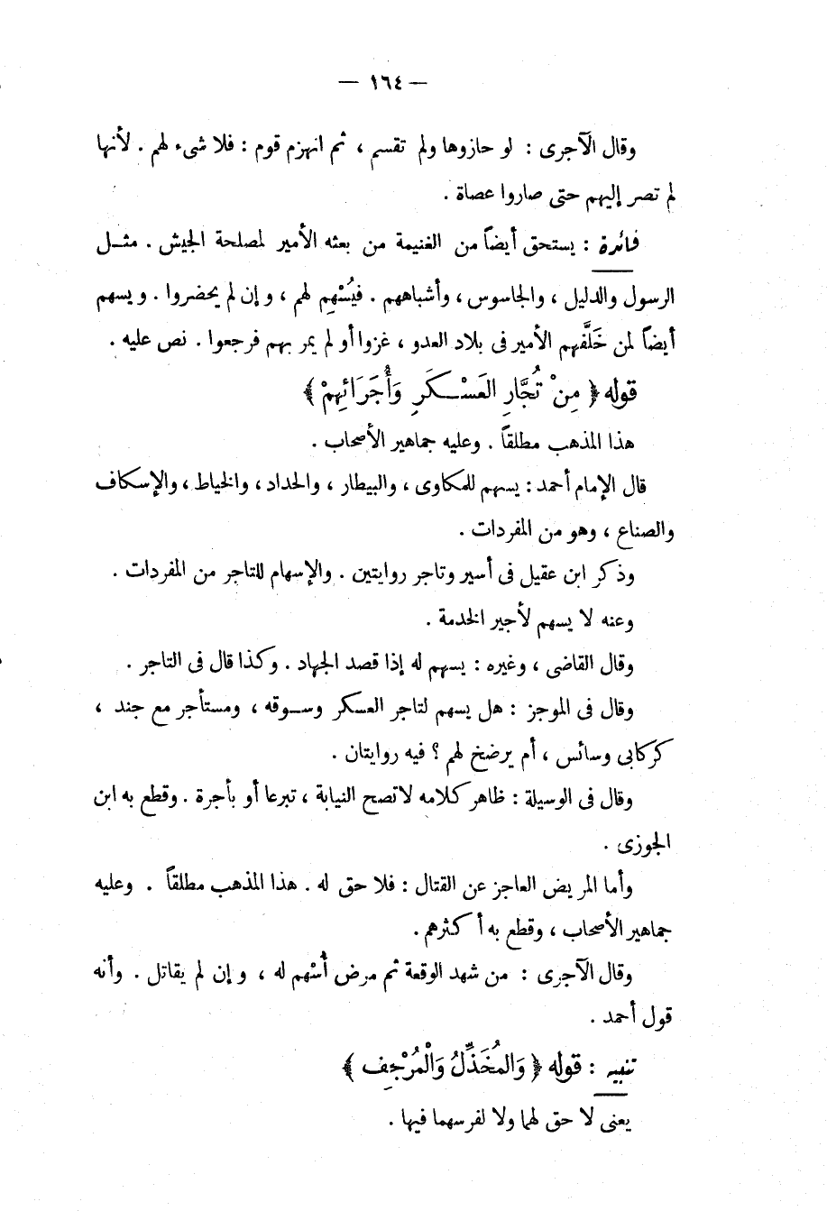 وَذَكَرَ ابْنُ عَقِيلٍ فِي أَسِيرٍ وَتَاجِرٍ رِوَايَتَيْنِ. وَالْإِسْهَامُ لِلتَّاجِرِ مِنْ الْمُفْرَدَاتِ. وَعَنْهُ لَا يُسْهَمُ لِأَجِيرِ الْخِدْمَةِ.