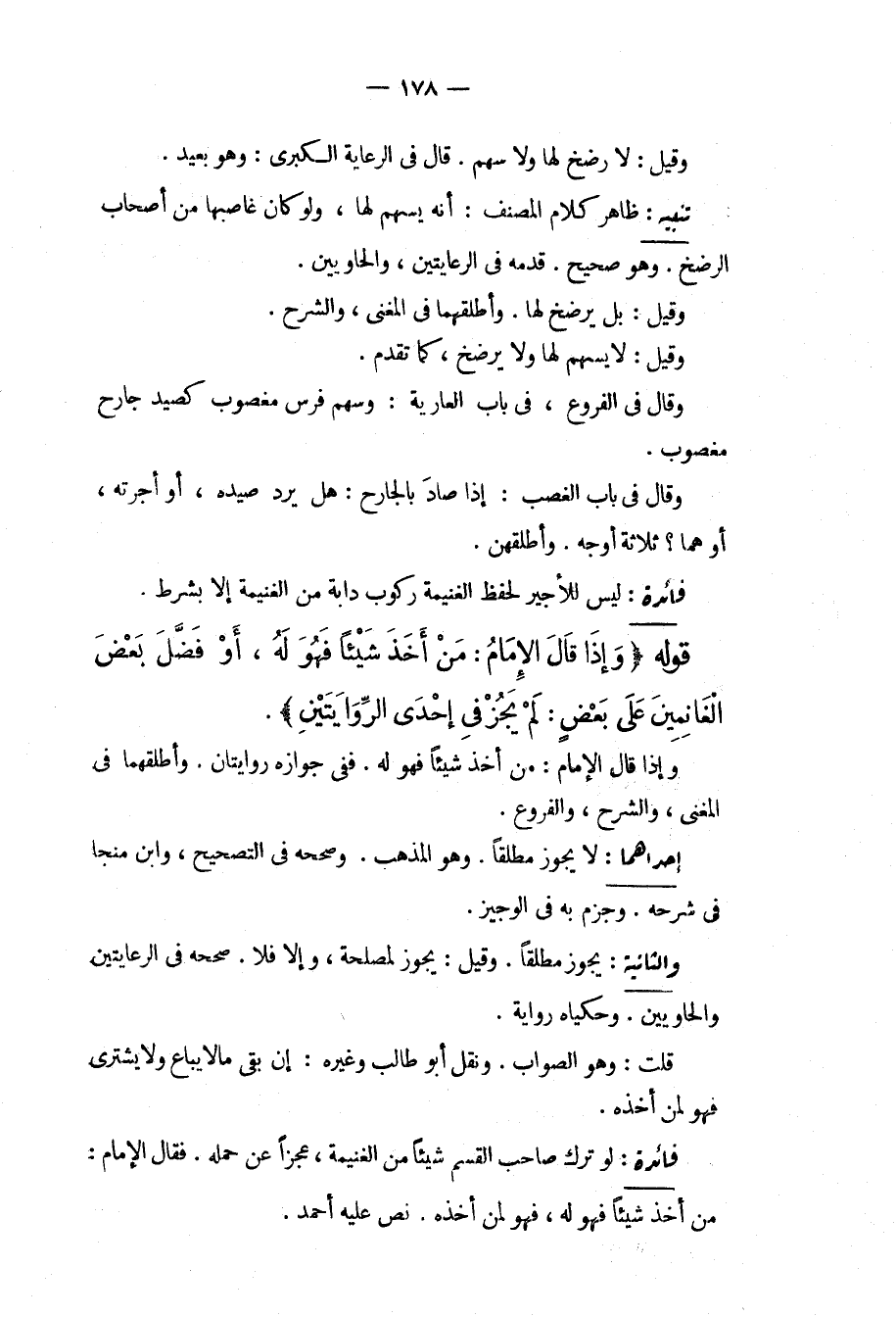 قَوْلُهُ (وَإِذَا قَالَ الْإِمَامُ: مَنْ أَخَذَ شَيْئًا فَهُوَ لَهُ، أَوْ فَضَّلَ بَعْضَ الْغَانِمِينَ عَلَى بَعْضٍ: لَمْ يَجُزْ فِي إحْدَى الرِّوَايَتَيْنِ) .