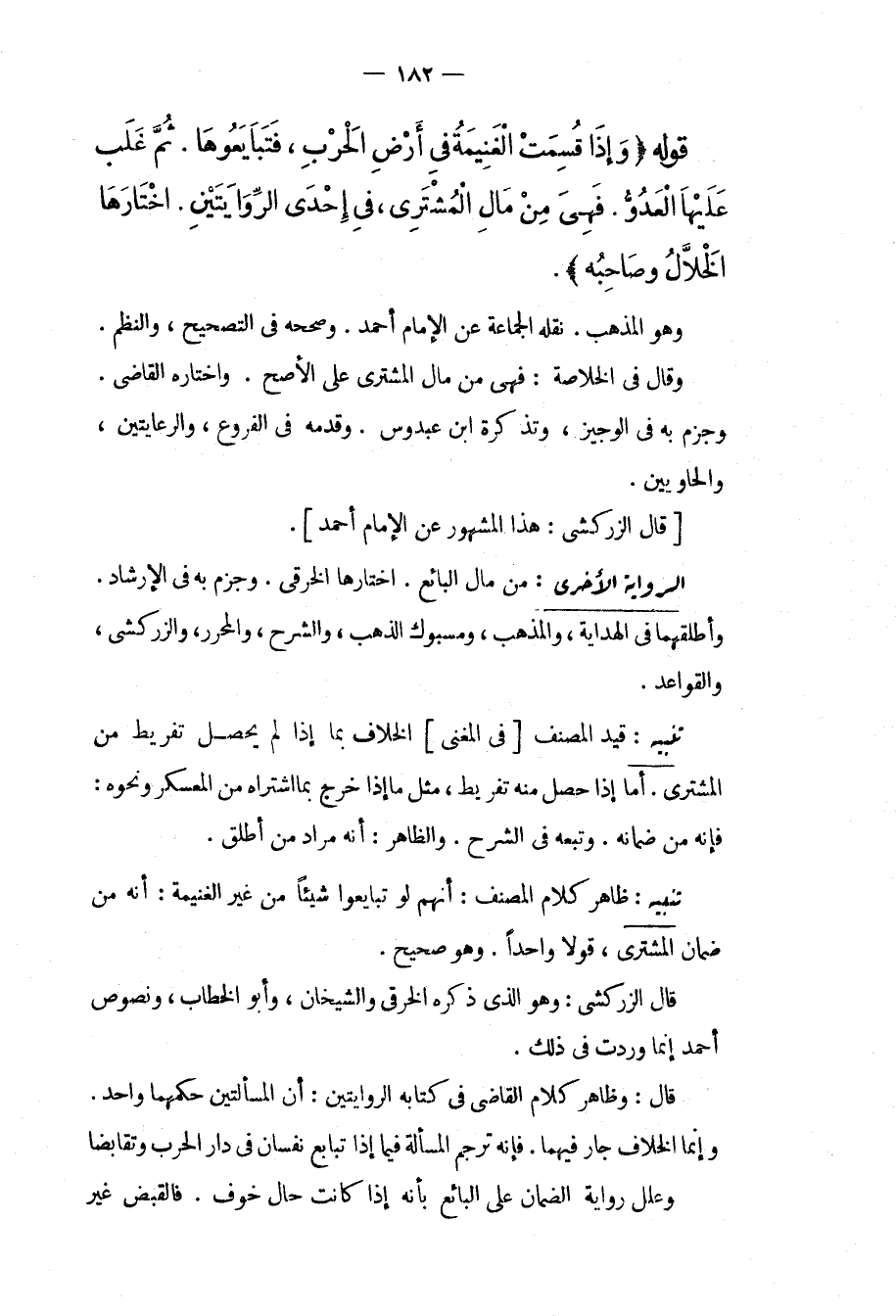 ظَاهِرُ كَلَامِ الْمُصَنِّفِ: أَنَّهُمْ لَوْ تَبَايَعُوا شَيْئًا مِنْ غَيْرِ الْغَنِيمَةِ: أَنَّهُ مِنْ ضَمَانِ الْمُشْتَرِي، قَوْلًا وَاحِدًا. وَهُوَ صَحِيحٌ. قَالَ الزَّرْكَشِيُّ: وَهُوَ الَّذِي ذَكَرَهُ الْخِرَقِيُّ وَالشَّيْخَانِ، وَأَبُو الْخَطَّابِ، وَنُصُوصُ أَحْمَدَ إنَّمَا وَرَدَتْ فِي ذَلِكَ.