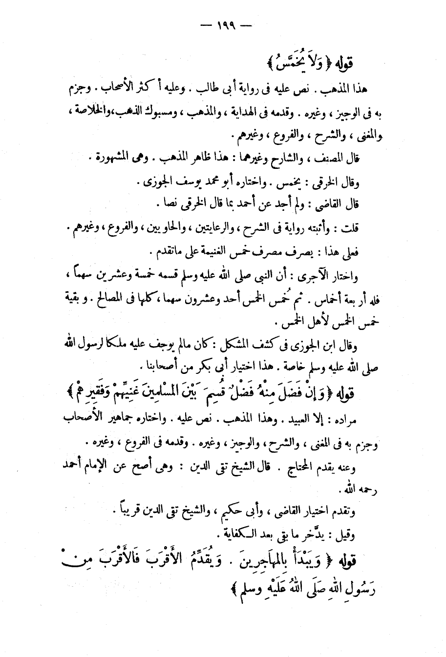 قَالَ الْمُصَنِّفُ، وَالشَّارِحُ وَغَيْرُهُمَا: هَذَا ظَاهِرُ الْمَذْهَبِ. وَهِيَ الْمَشْهُورَةُ. وَقَالَ الْخِرَقِيُّ: يُخَمَّسُ. وَاخْتَارَهُ أَبُو مُحَمَّدٍ يُوسُفُ الْجَوْزِيُّ. قَالَ الْقَاضِي: وَلَمْ أَجِدْ عَنْ أَحْمَدَ بِمَا قَالَ الْخِرَقِيُّ نَصًّا.