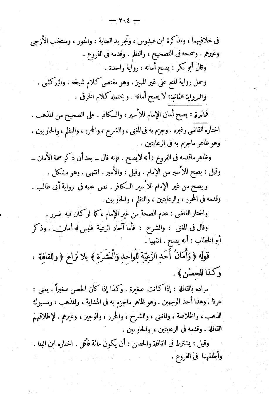 فِي خِلَافَيْهِمَا، وَتَذْكِرَةِ ابْنِ عَبْدُوسٍ، وَتَجْرِيدِ الْعِنَايَةِ، وَالْمُنَوِّرِ، وَمُنْتَخَبِ الْأَزَجِيِّ وَغَيْرِهِمْ. وَصَحَّحَهُ فِي التَّصْحِيحِ، وَالنَّظْمِ. وَقَدَّمَهُ فِي الْفُرُوعِ. وَقَالَ أَبُو بَكْرٍ: يَصِحُّ أَمَانُهُ، رِوَايَةٌ وَاحِدَةٌ. وَحَمَلَ رِوَايَةَ الْمَنْعِ عَلَى غَيْرِ الْمُمَيِّزِ. وَهُوَ مُقْتَضَى كَلَامِ شَيْخِهِ. وَالزَّرْكَشِيِّ.