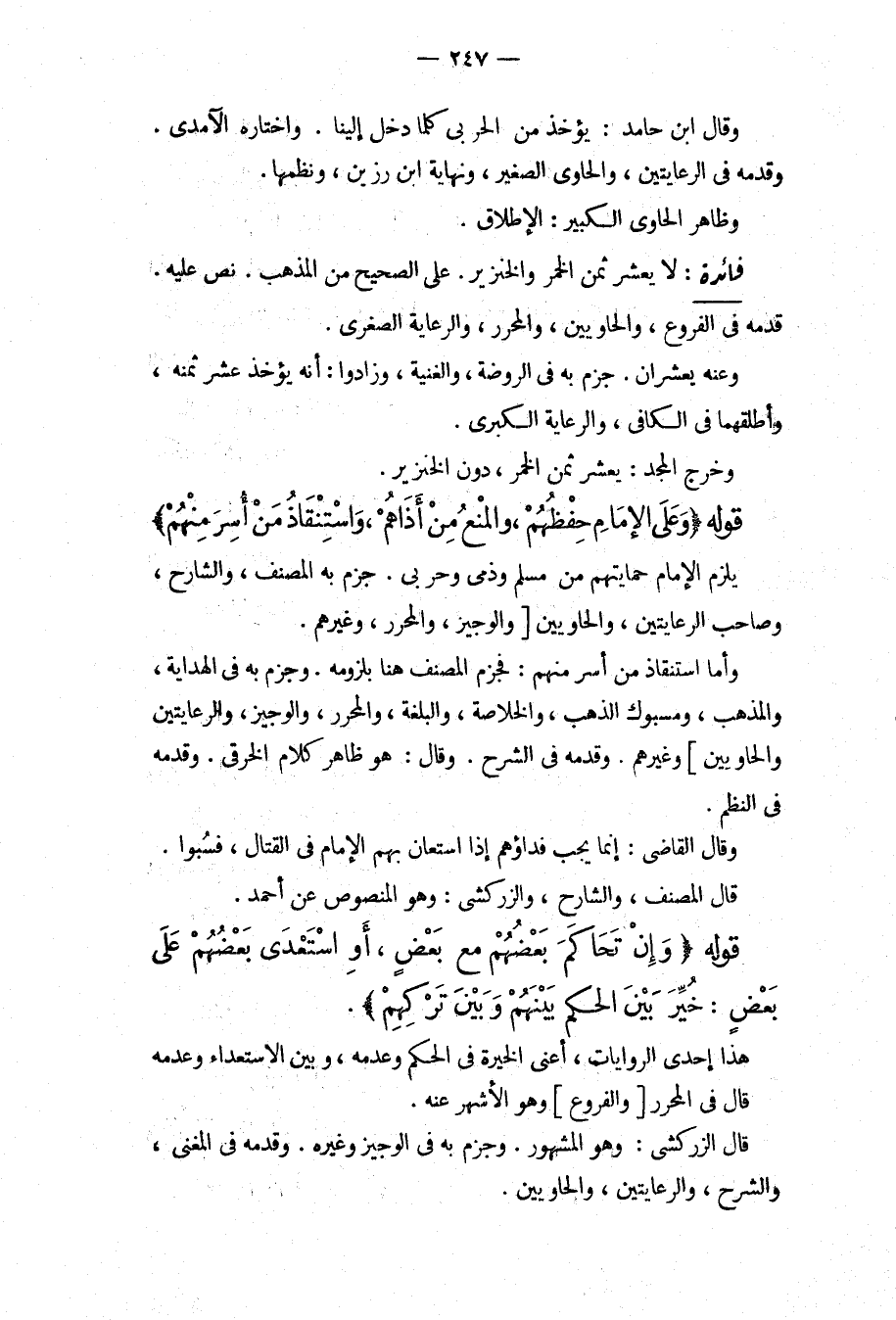 قَوْلُهُ (وَعَلَى الْإِمَامِ حِفْظُهُمْ، وَالْمَنْعُ مِنْ أَذَاهُمْ، وَاسْتِنْقَاذُ مَنْ أُسِرَ مِنْهُمْ) يَلْزَمُ الْإِمَامَ حِمَايَتُهُمْ مِنْ مُسْلِمٍ وَذِمِّيٍّ وَحَرْبِيٍّ. جَزَمَ بِهِ الْمُصَنِّفُ، وَالشَّارِحُ، وَصَاحِبُ الرِّعَايَتَيْنِ، وَالْحَاوِيَيْنِ [وَالْوَجِيزُ، وَالْمُحَرَّرُ، وَغَيْرُهُمْ. وَأَمَّا اسْتِنْقَاذُ مَنْ أُسِرَ مِنْهُمْ: فَجَزَمَ الْمُصَنِّفُ هُنَا بِلُزُومِهِ. وَجَزَمَ بِهِ فِي الْهِدَايَةِ، وَالْمُذْهَبِ، وَمَسْبُوكِ الذَّهَبِ، وَالْخُلَاصَةِ، وَالْبُلْغَةِ، وَالْمُحَرَّرِ، وَالْوَجِيزِ، وَالرِّعَايَتَيْنِ وَالْحَاوِيَيْنِ] وَغَيْرِهِمْ. وَقَدَّمَهُ فِي الشَّرْحِ. وَقَالَ: هُوَ ظَاهِرُ كَلَامِ الْخِرَقِيِّ. وَقَدَّمَهُ فِي النَّظْمِ. وَقَالَ الْقَاضِي: إنَّمَا يَجِبُ فِدَاؤُهُمْ إذَا اسْتَعَانَ بِهِمْ الْإِمَامُ فِي الْقِتَالِ، فَسُبُوا. قَالَ الْمُصَنِّفُ، وَالشَّارِحُ، وَالزَّرْكَشِيُّ: وَهُوَ الْمَنْصُوصُ عَنْ أَحْمَدَ.