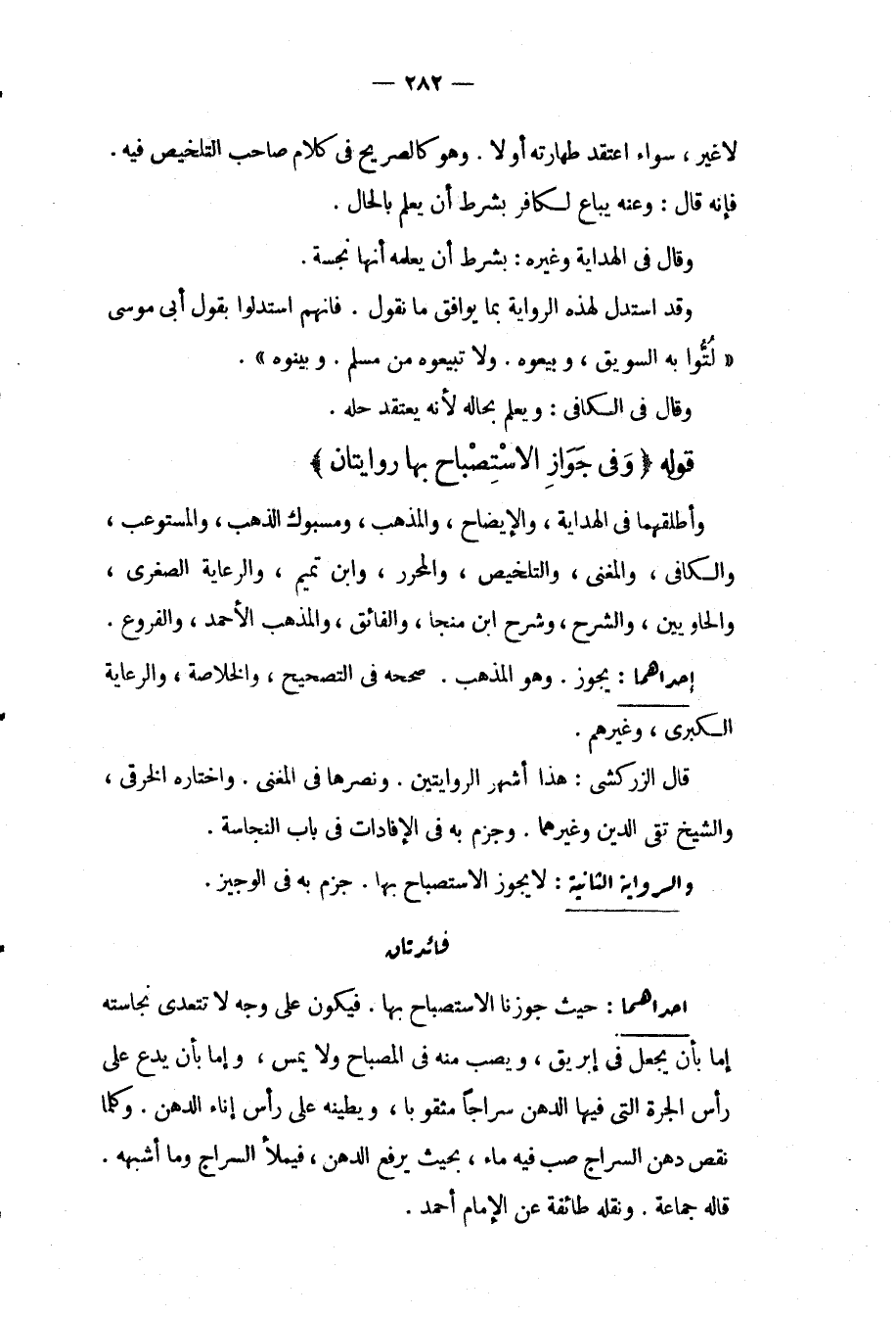 لَا غَيْرُ سَوَاءٌ اعْتَقَدَ طَهَارَتَهُ أَوْ لَا. وَهُوَ كَالصَّرِيحِ فِي كَلَامِ صَاحِبِ التَّلْخِيصِ فِيهِ. فَإِنَّهُ قَالَ: وَعَنْهُ يُبَاعُ لِكَافِرٍ بِشَرْطِ أَنْ يَعْلَمَ بِالْحَالِ. وَقَالَ فِي الْهِدَايَةِ وَغَيْرِهِ: بِشَرْطِ أَنْ يُعْلِمَهُ أَنَّهَا نَجِسَةٌ. وَقَدْ اسْتَدَلَّ لِهَذِهِ الرِّوَايَةِ بِمَا يُوَافِقُ مَا نَقُولُ. فَإِنَّهُمْ اسْتَدَلُّوا بِقَوْلِ أَبِي مُوسَى " لُتُّوا بِهِ السَّوِيقَ، وَبِيعُوهُ. وَلَا تَبِيعُوهُ مِنْ مُسْلِمٍ. وَبَيِّنُوهُ ". وَقَالَ فِي الْكَافِي: وَيَعْلَمُ بِحَالِهِ لِأَنَّهُ يَعْتَقِدُ حِلَّهُ. قَوْلُهُ (وَفِي جَوَازِ الِاسْتِصْبَاحِ بِهَا رِوَايَتَانِ) وَأَطْلَقَهُمَا فِي الْهِدَايَةِ، وَالْإِيضَاحِ، وَالْمُذْهَبِ، وَمَسْبُوكِ الذَّهَبِ، وَالْمُسْتَوْعِبِ، وَالْكَافِي، وَالْمُغْنِي، وَالتَّلْخِيصِ، وَالْمُحَرَّرِ، وَابْنِ تَمِيمٍ، وَالرِّعَايَةِ الصُّغْرَى. وَالْحَاوِيَيْنِ، وَالشَّرْحِ، وَشَرْحِ ابْنِ مُنَجَّا، وَالْفَائِقِ، وَالْمَذْهَبِ الْأَحْمَدِ، وَالْفُرُوعِ.