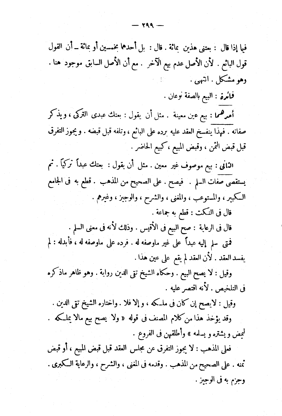 الْبَيْعُ بِالصِّفَةِ نَوْعَانِ.
