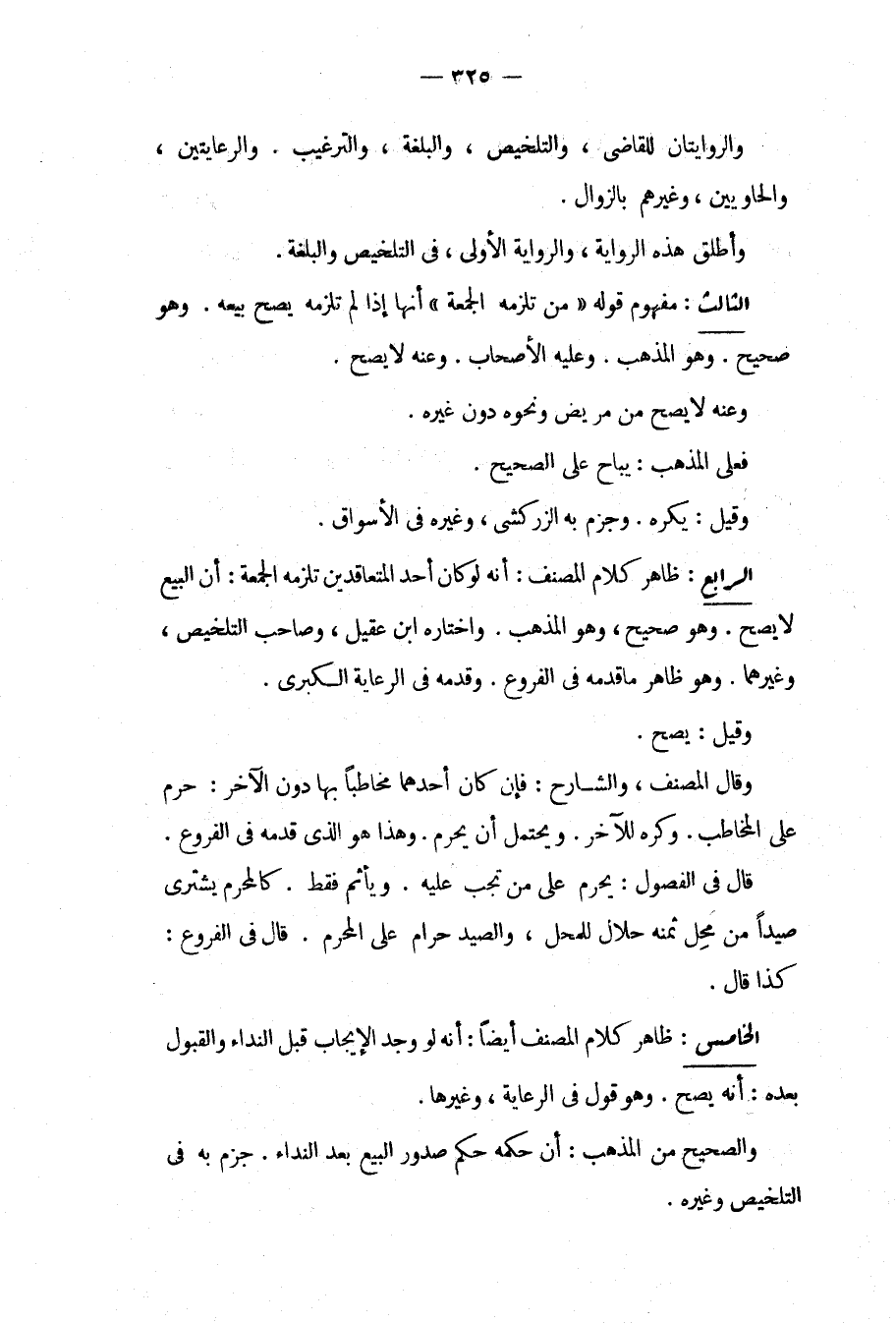 الْخَامِسُ: ظَاهِرُ كَلَامِ الْمُصَنِّفِ أَيْضًا: أَنَّهُ لَوْ وُجِدَ الْإِيجَابُ قَبْلَ النِّدَاءِ وَالْقَبُولُ بَعْدَهُ: أَنَّهُ يَصِحُّ. وَهُوَ قَوْلٌ فِي الرِّعَايَةِ الصُّغْرَى، وَغَيْرِهَا. وَالصَّحِيحُ مِنْ الْمَذْهَبِ: أَنَّ حُكْمَهُ حُكْمُ صُدُورِ الْبَيْعِ بَعْدَ النِّدَاءِ. جَزَمَ بِهِ فِي التَّلْخِيصِ وَغَيْرِهِ.