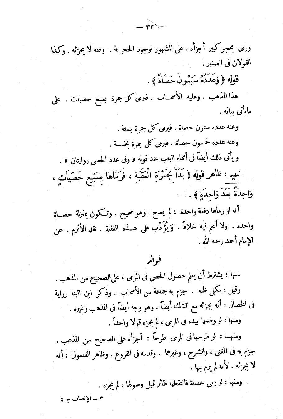 قَوْلُهُ (وَعَدَدُهُ سَبْعُونَ حَصَاةً) هَذَا الْمَذْهَبُ وَعَلَيْهِ الْأَصْحَابُ فَيَرْمِي كُلَّ جَمْرَةٍ بِسَبْعِ حَصَيَاتٍ عَلَى مَا يَأْتِي بَيَانُهُ وَعَنْهُ عَدَدُهُ سِتُّونَ حَصَاةً فَيَرْمِي كُلَّ جَمْرَةٍ بِسِتَّةٍ وَعَنْهُ عَدَدُهُ خَمْسُونَ حَصَاةً فَيَرْمِي كُلَّ جَمْرَةٍ بِخَمْسَةٍ وَيَأْتِي ذَلِكَ أَيْضًا فِي أَثْنَاءِ الْبَابِ عِنْدَ قَوْلِهِ " وَفِي عَدَدِ الْحَصَى رِوَايَتَانِ " تَنْبِيهٌ: