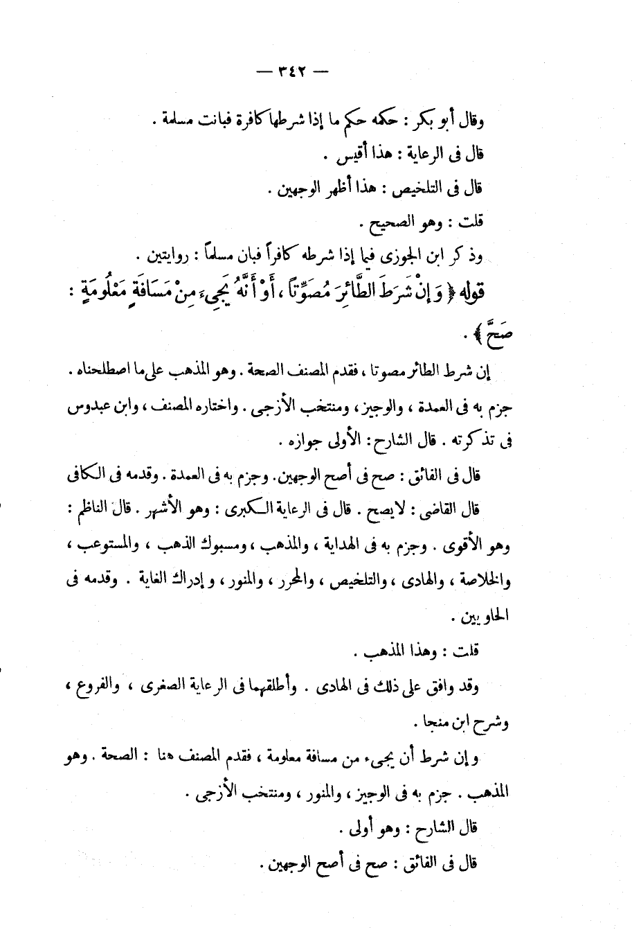وَقَالَ أَبُو بَكْرٍ: حُكْمُهُ حُكْمُ مَا إذَا شَرَطَهَا كَافِرَةً فَبَانَتْ مُسْلِمَةً. قَالَ فِي الرِّعَايَةِ: هَذَا أَقْيَسُ. قَالَ فِي التَّلْخِيصِ: هَذَا أَظْهَرُ الْوَجْهَيْنِ. قُلْت: وَهُوَ الصَّحِيحُ. وَذَكَرَ ابْنُ الْجَوْزِيِّ فِيمَا إذَا شَرَطَهُ كَافِرًا فَبَانَ مُسْلِمًا: رِوَايَتَيْنِ. قَوْلُهُ (وَإِنْ شَرَطَ الطَّائِرَ مُصَوِّتًا، أَوْ أَنَّهُ يَجِيءُ مِنْ مَسَافَةٍ مَعْلُومَةٍ: صَحَّ) . إنْ شَرَطَ الطَّائِرَ مُصَوِّتًا، فَقَدَّمَ الْمُصَنِّفُ الصِّحَّةَ. وَهُوَ الْمَذْهَبُ عَلَى مَا اصْطَلَحْنَاهُ. جَزَمَ بِهِ فِي الْعُمْدَةِ، وَالْوَجِيزِ، وَمُنْتَخَبِ الْأَزَجِيِّ. وَاخْتَارَهُ الْمُصَنِّفُ، وَابْنُ عَبْدُوسٍ فِي تَذْكِرَتِهِ. قَالَ الشَّارِحُ: الْأَوْلَى جَوَازُهُ. قَالَ فِي الْفَائِقِ: صَحَّ فِي أَصَحِّ الْوَجْهَيْنِ. وَجَزَمَ بِهِ فِي الْعُمْدَةِ. وَقَدَّمَهُ فِي الْكَافِي قَالَ الْقَاضِي: لَا يَصِحُّ. قَالَ فِي الرِّعَايَةِ الْكُبْرَى: وَهُوَ الْأَشْهَرُ. قَالَ النَّاظِمُ: وَهُوَ الْأَقْوَى. وَجَزَمَ بِهِ فِي الْهِدَايَةِ، وَالْمُذْهَبِ، وَمَسْبُوكِ الذَّهَبِ، وَالْمُسْتَوْعِبِ، وَالْخُلَاصَةِ، وَالْهَادِي، وَالتَّلْخِيصِ، وَالْمُحَرَّرِ، وَالْمُنَوِّرِ، وَإِدْرَاكِ الْغَايَةِ. وَقَدَّمَهُ فِي الْحَاوِيَيْنِ. قُلْت: وَهَذَا الْمَذْهَبُ. وَقَدْ وَافَقَ عَلَى ذَلِكَ فِي الْهَادِي. وَأَطْلَقَهُمَا فِي الرِّعَايَةِ الصُّغْرَى، وَالْفُرُوعِ، وَشَرْحِ ابْنِ مُنَجَّا. وَإِنْ شَرَطَ أَنْ يَجِيءَ مِنْ مَسَافَةٍ مَعْلُومَةٍ، فَقَدَّمَ الْمُصَنِّفُ هُنَا: الصِّحَّةَ. وَهُوَ الْمَذْهَبُ. جَزَمَ بِهِ فِي الْوَجِيزِ، وَالْمُنَوِّرِ، وَمُنْتَخَبِ الْأَزَجِيِّ. قَالَ الشَّارِحُ: وَهُوَ أَوْلَى. قَالَ فِي الْفَائِقِ: صَحَّ فِي أَصَحِّ الْوَجْهَيْنِ.