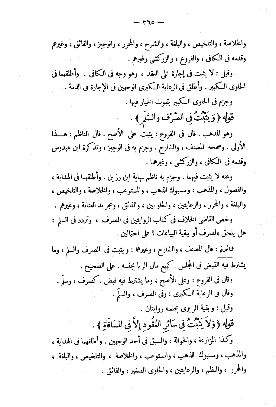 وَالْخُلَاصَةِ، وَالتَّلْخِيصِ، وَالْبُلْغَةِ، وَالشَّرْحِ، وَالْمُحَرَّرِ، وَالْوَجِيزِ، وَالْفَائِقِ، وَغَيْرِهِمْ وَقَدَّمَهُ فِي الْكَافِي، وَالْفُرُوعِ، وَالزَّرْكَشِيُّ وَغَيْرِهِمْ. وَقِيلَ: لَا يَثْبُتُ فِي إجَارَةٍ تَلِي الْعَقْدَ، وَهُوَ وَجْهٌ فِي الْكَافِي. وَأَطْلَقَهُمَا فِي الْحَاوِي الْكَبِيرِ. وَأَطْلَقَ فِي الرِّعَايَةِ الْكُبْرَى الْوَجْهَيْنِ فِي الْإِجَارَةِ فِي الذِّمَّةِ. وَجَزَمَ فِي الْحَاوِي الْكَبِيرِ بِثُبُوتِ الْخِيَارِ فِيهَا. قَوْلُهُ (وَيَثْبُتُ فِي الصَّرْفِ وَالسَّلَمِ) .