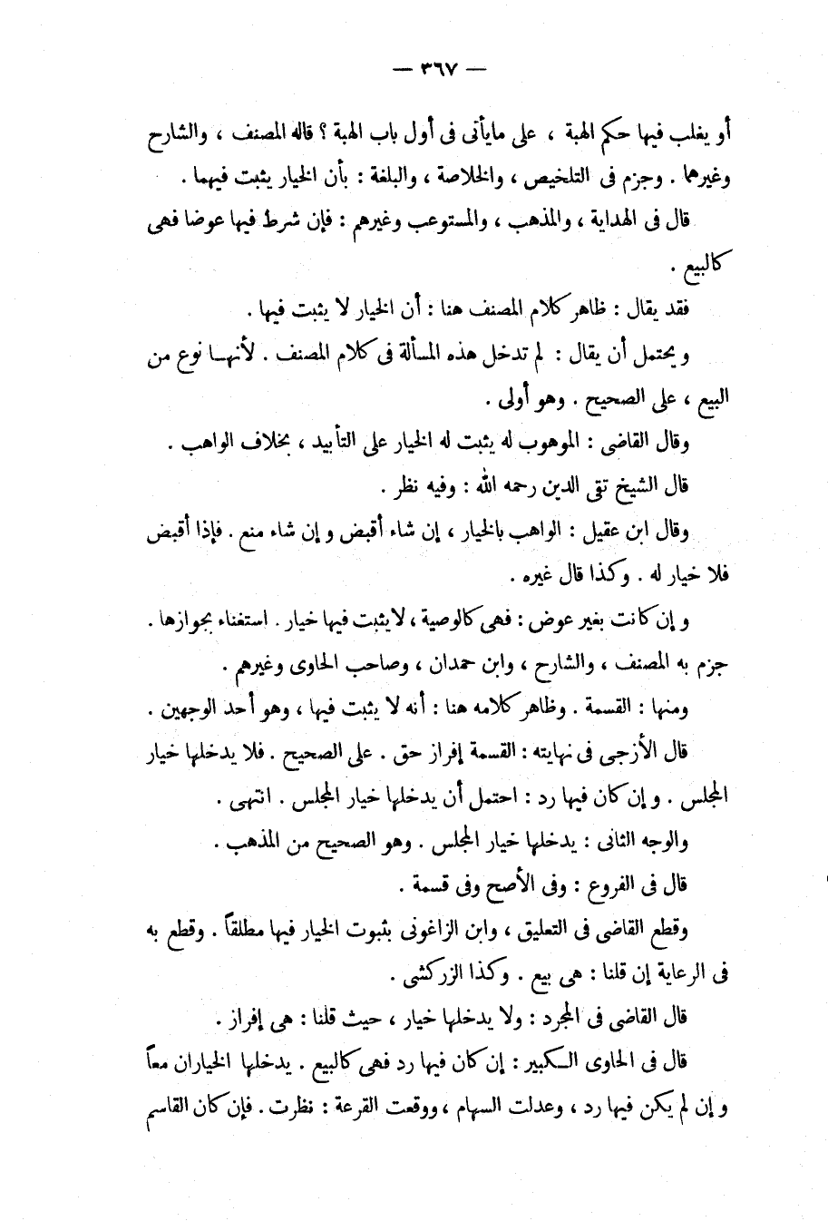 فَقَدْ يُقَالُ: ظَاهِرُ كَلَامِ الْمُصَنِّفِ هُنَا: أَنَّ الْخِيَارَ لَا يَثْبُتُ فِيهَا. وَيَحْتَمِلُ أَنْ يُقَالَ: لَمْ تَدْخُلْ هَذِهِ الْمَسْأَلَةُ فِي كَلَامِ الْمُصَنِّفِ. لِأَنَّهَا نَوْعٌ مِنْ الْبَيْعِ، عَلَى الصَّحِيحِ. وَهُوَ أَوْلَى. وَقَالَ الْقَاضِي: الْمَوْهُوبُ لَهُ يَثْبُتُ لَهُ الْخِيَارُ عَلَى التَّأْبِيدِ، بِخِلَافِ الْوَاهِبِ. قَالَ الشَّيْخُ تَقِيُّ الدِّينِ - رَحِمَهُ اللَّهُ -: وَفِيهِ نَظَرٌ.