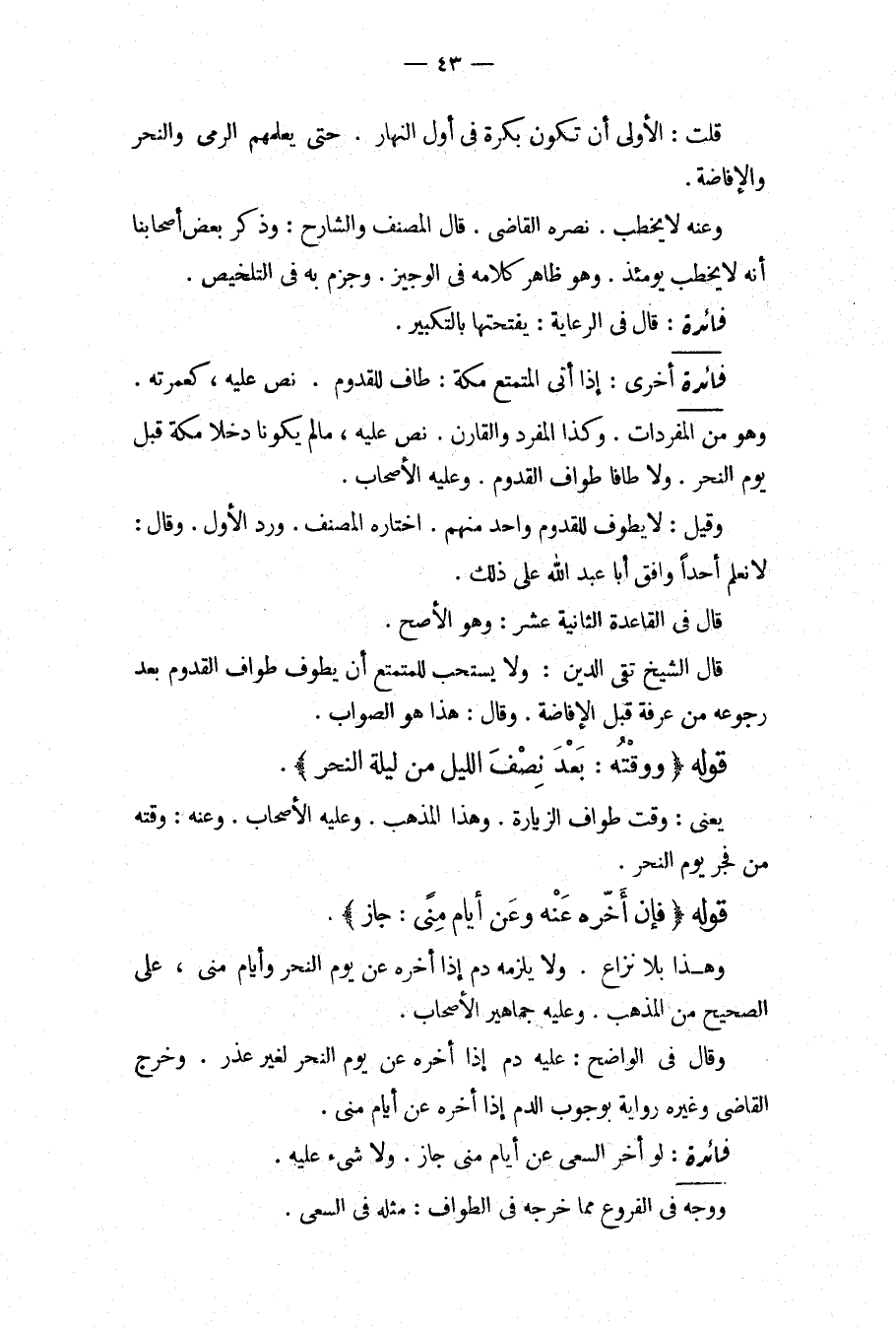 قَوْلُهُ (فَإِنْ أَخَّرَهُ عَنْهُ وَعَنْ أَيَّامِ مِنًى: جَازَ) وَهَذَا بِلَا نِزَاعٍ وَلَا يَلْزَمُهُ دَمٌ إذَا أَخَّرَهُ عَنْ يَوْمِ النَّحْرِ وَأَيَّامِ مِنًى، عَلَى الصَّحِيحِ مِنْ الْمَذْهَبِ وَعَلَيْهِ جَمَاهِيرُ الْأَصْحَابِ وَقَالَ فِي الْوَاضِحِ: عَلَيْهِ دَمٌ إذَا أَخَّرَهُ عَنْ يَوْمِ النَّحْرِ لِغَيْرِ عُذْرٍ وَخَرَّجَ الْقَاضِي وَغَيْرُهُ رِوَايَةً بِوُجُوبِ الدَّمِ إذَا أَخَّرَهُ عَنْ أَيَّامِ مِنًى