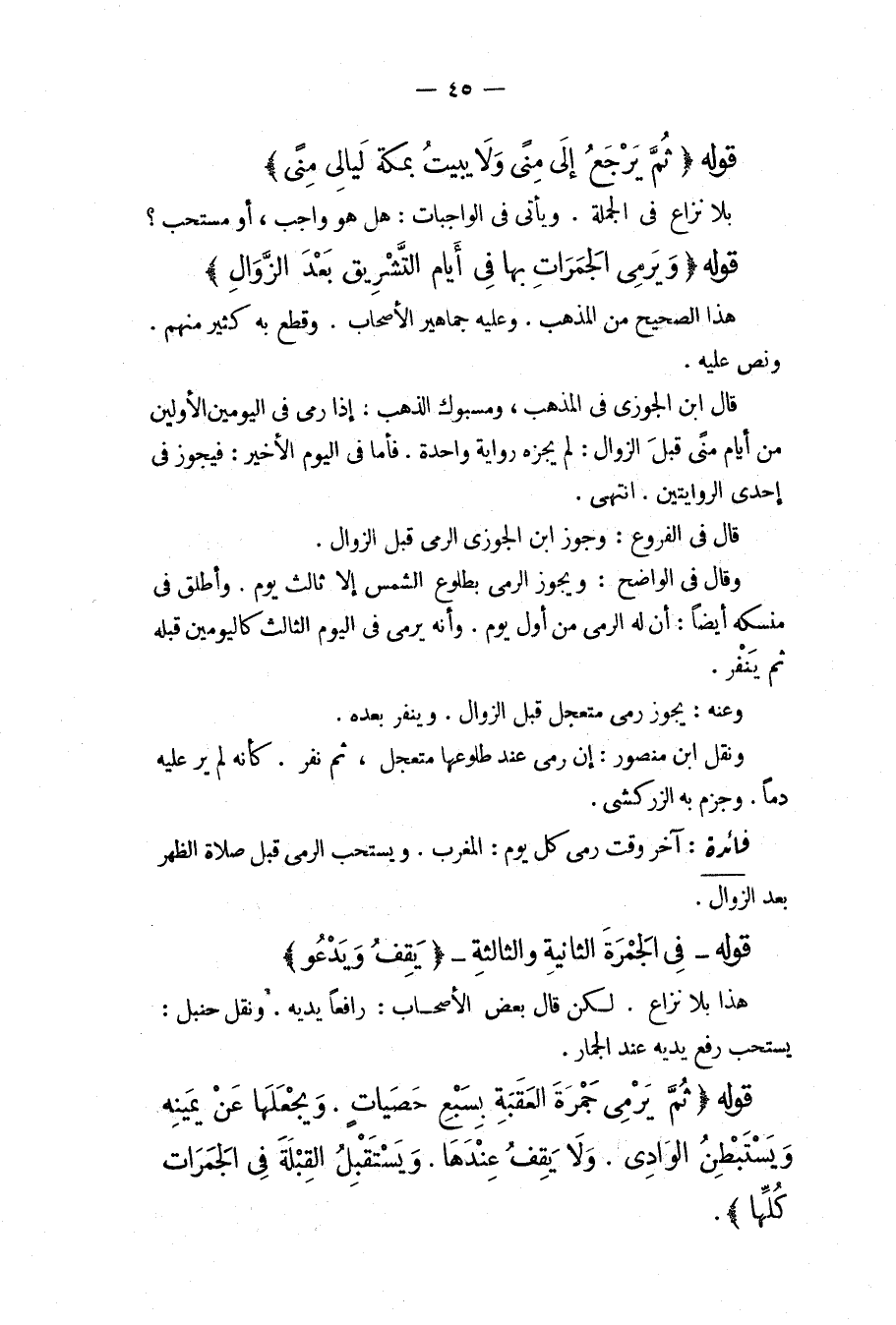 قَوْلُهُ فِي الْجَمْرَةِ الثَّانِيَةِ وَالثَّالِثَةِ (يَقِفُ وَيَدْعُو) هَذَا بِلَا نِزَاعٍ لَكِنْ قَالَ بَعْضُ الْأَصْحَابِ رَافِعًا يَدَيْهِ وَنَقَلَ حَنْبَلٌ: يُسْتَحَبُّ رَفْعُ يَدَيْهِ عِنْدَ الْجِمَارِ.