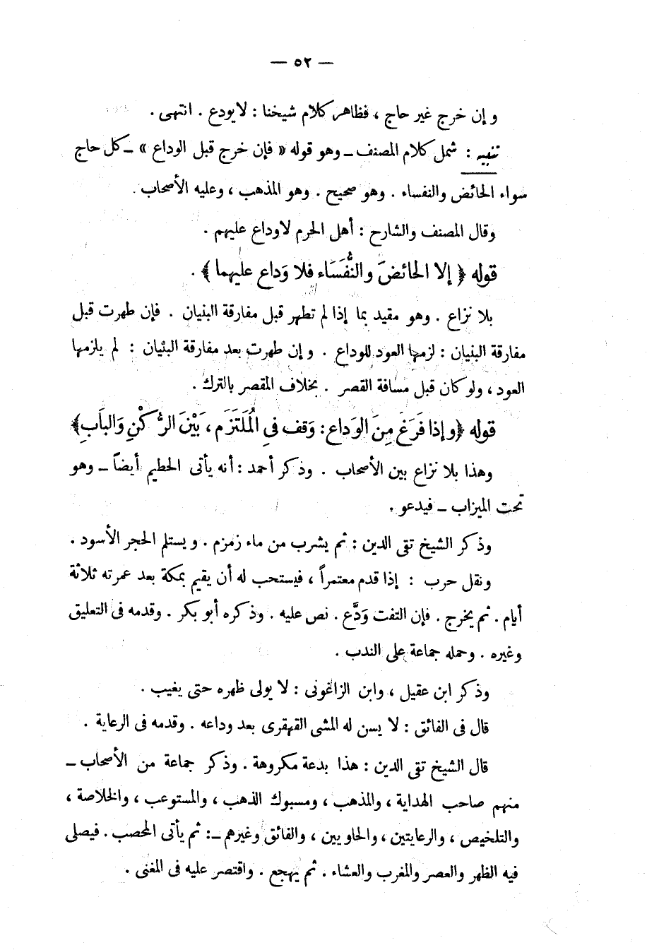قَوْلُهُ (إلَّا الْحَائِضَ وَالنُّفَسَاءَ فَلَا وَدَاعَ عَلَيْهِمَا) بِلَا نِزَاعٍ وَهُوَ مُقَيَّدٌ بِمَا إذَا لَمْ تَطْهُرْ قَبْلَ مُفَارَقَةِ الْبُنْيَانِ فَإِنْ طَهُرَتْ قَبْلَ مُفَارَقَةِ الْبُنْيَانِ: لَزِمَهَا الْعَوْدُ لِلْوَدَاعِ وَإِنْ طَهُرَتْ بَعْدَ مُفَارَقَةِ الْبُنْيَانِ: لَمْ يَلْزَمْهَا الْعَوْدُ، وَلَوْ كَانَ قَبْلَ مَسَافَةِ الْقَصْرِ بِخِلَافِ الْمُقَصِّرِ بِالتَّرْكِ.