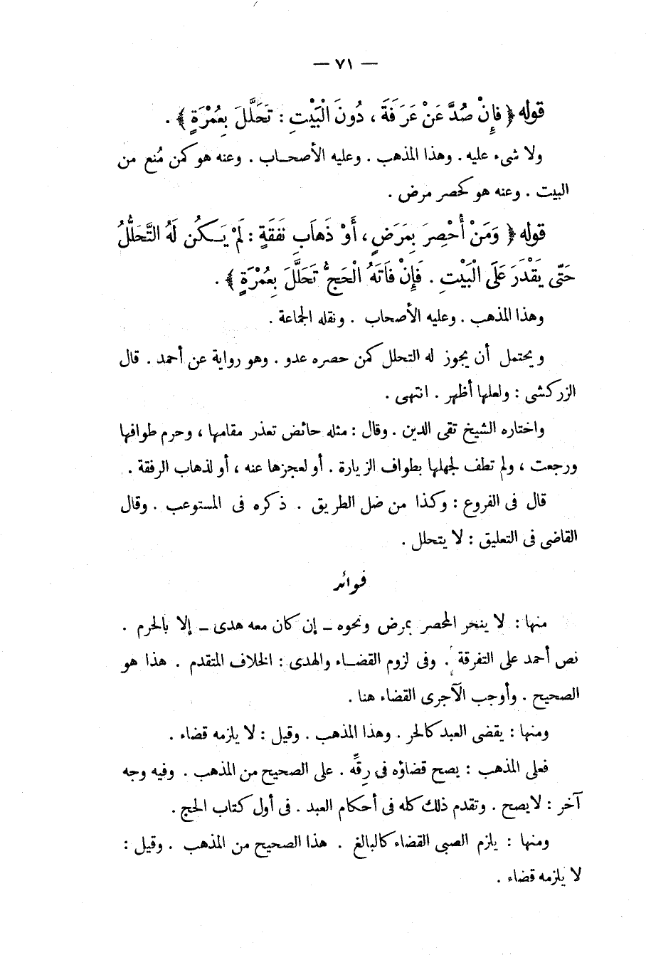 قَوْلُهُ (فَإِنْ صُدَّ عَنْ عَرَفَةَ، دُونَ الْبَيْتِ: تَحَلَّلَ بِعُمْرَةٍ) وَلَا شَيْءَ عَلَيْهِ وَهَذَا الْمَذْهَبُ وَعَلَيْهِ الْأَصْحَابُ وَعَنْهُ هُوَ كَمَنْ مُنِعَ مِنْ الْبَيْتِ وَعَنْهُ هُوَ كَحَصْرِ مَرَضٍ قَوْلُهُ (وَمَنْ أُحْصِرَ بِمَرَضٍ، أَوْ ذَهَابِ نَفَقَةٍ: لَمْ يَكُنْ لَهُ التَّحَلُّلُ حَتَّى يَقْدِرَ عَلَى الْبَيْتِ فَإِنْ فَاتَهُ الْحَجُّ، تَحَلَّلَ بِعُمْرَةٍ) وَهَذَا الْمَذْهَبُ وَعَلَيْهِ الْأَصْحَابُ وَنَقَلَهُ الْجَمَاعَةُ وَيَحْتَمِلُ أَنْ يَجُوزَ لَهُ التَّحَلُّلُ كَمَنْ حَصَرَهُ عَدُوٌّ وَهُوَ رِوَايَةٌ عَنْ أَحْمَدَ قَالَ الزَّرْكَشِيُّ: وَلَعَلَّهَا أَظْهَرُ انْتَهَى.