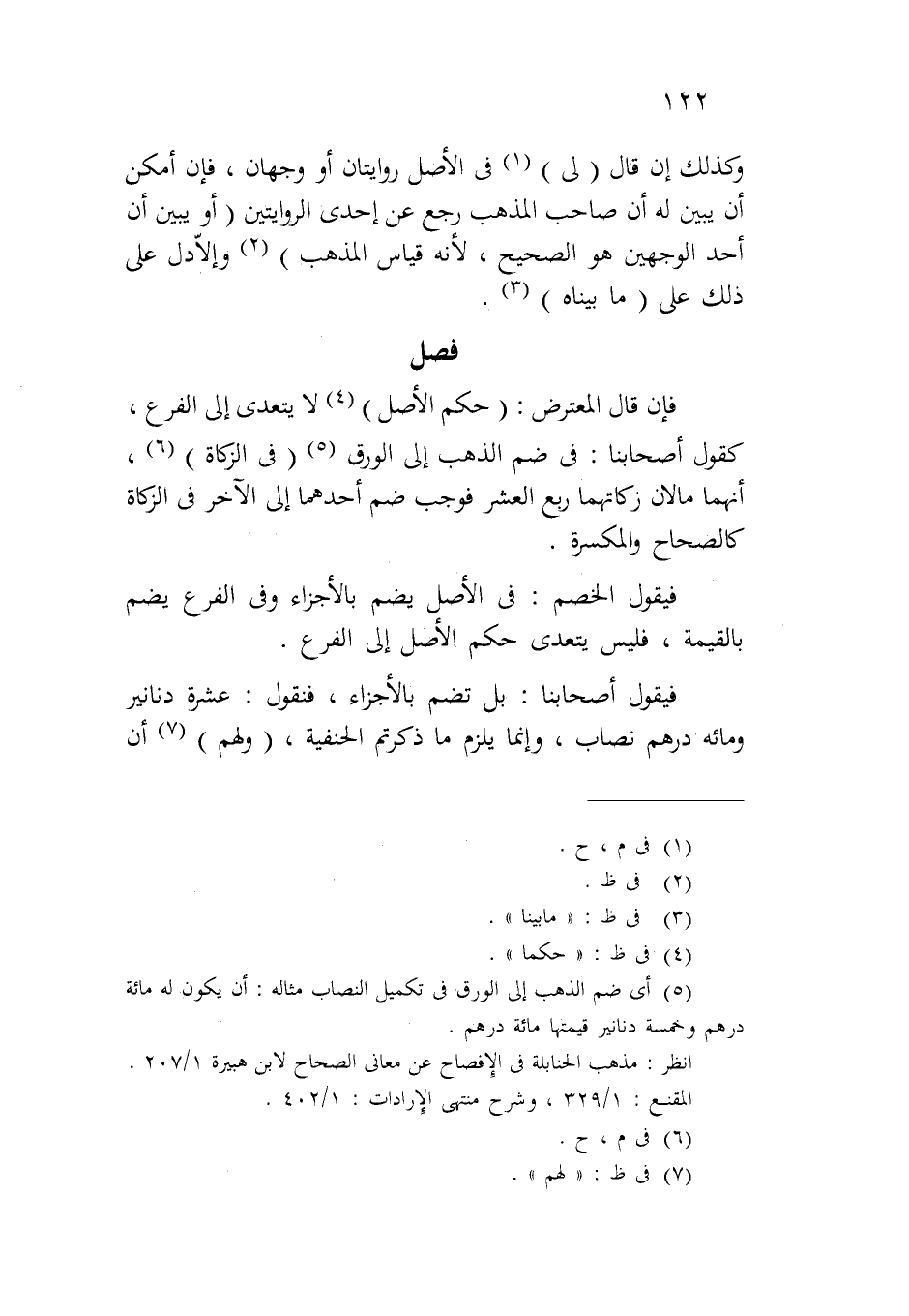فيقول أصحابنا: بل تضم بالأجزاء، فنقول: عشرة دنانير ومائة درهم نصاب، وإنما يلزم ما ذكرتم الحنفية، (ولهم) أن
