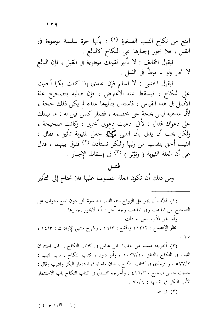 فيقول الحنبلي: لا أسلم فإن عندي إذا كانت بكراً أجبرت على النكاح، فيسقط عنه الاعتراض، فإن طالبه بتصحيح علة الأصل في هذا القياس، فاستدل بتأثيرها عنده لم يكن ذلك حجة، لأن مذهبه ليس بحجة على خصمه، فصار كمن قيل له: ما بينتك على دعواك فقال: لأني ادعيت دعوى أخرى، وكانت صحيحة، ولكن يجب أن يدل بأن النبي صلى الله عليه وسلم جعل للثيوبة تأثيراً، فقال: الثيب أحق بنفسها من وليها والبكر تستأذن ففرق بينهما، فدل على أن العلة الثيوبة (وتؤثر) في إسقاط الإجبار.