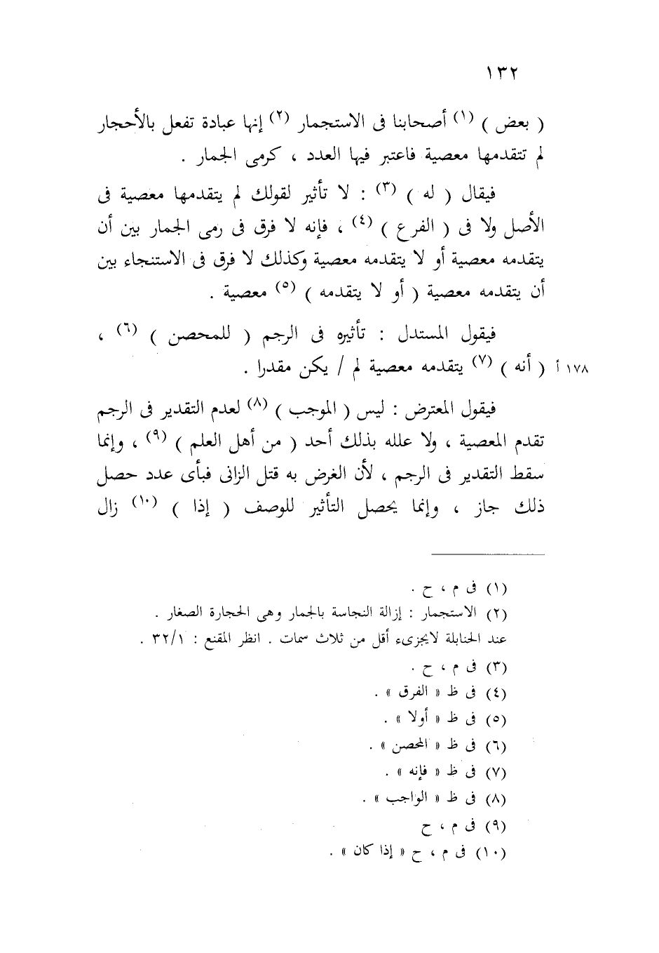 فيقال (له): لا تأثير لقولك لم يتقدمها معصية في الأصل ولا في (الفرع)، فإنه لا فرق في رمي الجمار بين أن يتقدمه معصية أو لا يتقدمه معصية وكذلك لا فرق في الاستنجاء بين أن يتقدمه معصية (أو لا يتقدمه) معصية.