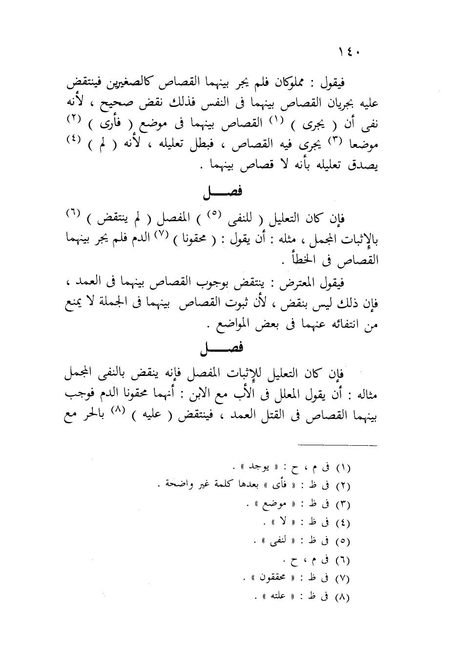 فإن كان التعليل (للنفي) المفصل (لم ينتقض) بالإثبات المجمل، مثله: أن يقول: (محقوناً) الدم فلم يجر بينهما القصاص في الخطأ.