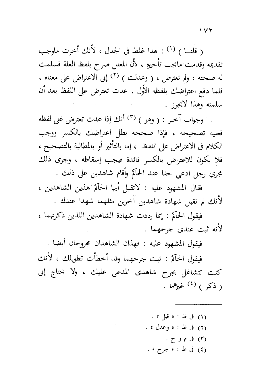 (قلنا): هذا غلط في الجدل، لأنك أخرت ما وجب تقديمه وقدمت ما يجب تأخيره، لأن المعلل صرح بلفظ العلة فسلمت له صحته، ولم تعترض، (وعدلت) إلى الاعتراض على معناه، فلما دفع اعتراضك بلفظه الأول. عدت تعترض على اللفظ بعد أن سلمته وهذا لا يجوز.