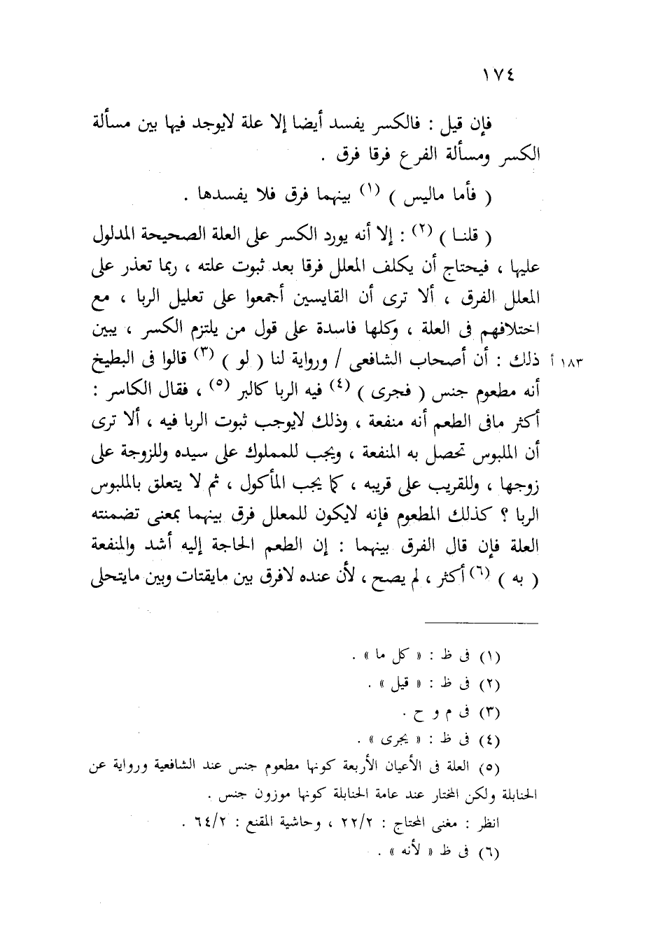 (قلنا): إلا أنه يورد الكسر على العلة الصحيحة المدلول عليها، فيحتاج أن يكلف المعلل فرقاً بعد ثبوت علته، ربما تعذر على المعلل الفرق، ألا ترى أن القايسين أجمعوا على تعليل الربا، مع اختلافهم في العلة، وكلها فاسدة على قول من يلتزم الكسر، يبين ذلك: أن أصحاب الشافعي/١٨٣ أورواية لنا (لو) قالوا في البطيخ أنه مطعوم جنس (فجرى) فيه الربا كالبر، فقال الكاسر: أكثر ما في الطعم أنه منفعة، وذلك لا يوجب ثبوت الربا فيه، ألا ترى أن الملبوس تحصل به المنفعة، ويجب للمملوك على سيده وللزوجة على زوجها، وللقريب على قريبه، كما يجب المأكول، ثم لا يتعلق بالملبوس الربا؟ كذلك المطعوم فإنه لا يكون للمعلل فرق بينهما بمعنى تضمنته العلة فإن قال الفرق بينهما: إن الطعم الحاجة إليه أشد والمنفعة (به) أكثر، لم يصح، لأن عنده لا فرق بين ما يقتات وبين ما يتحلى
