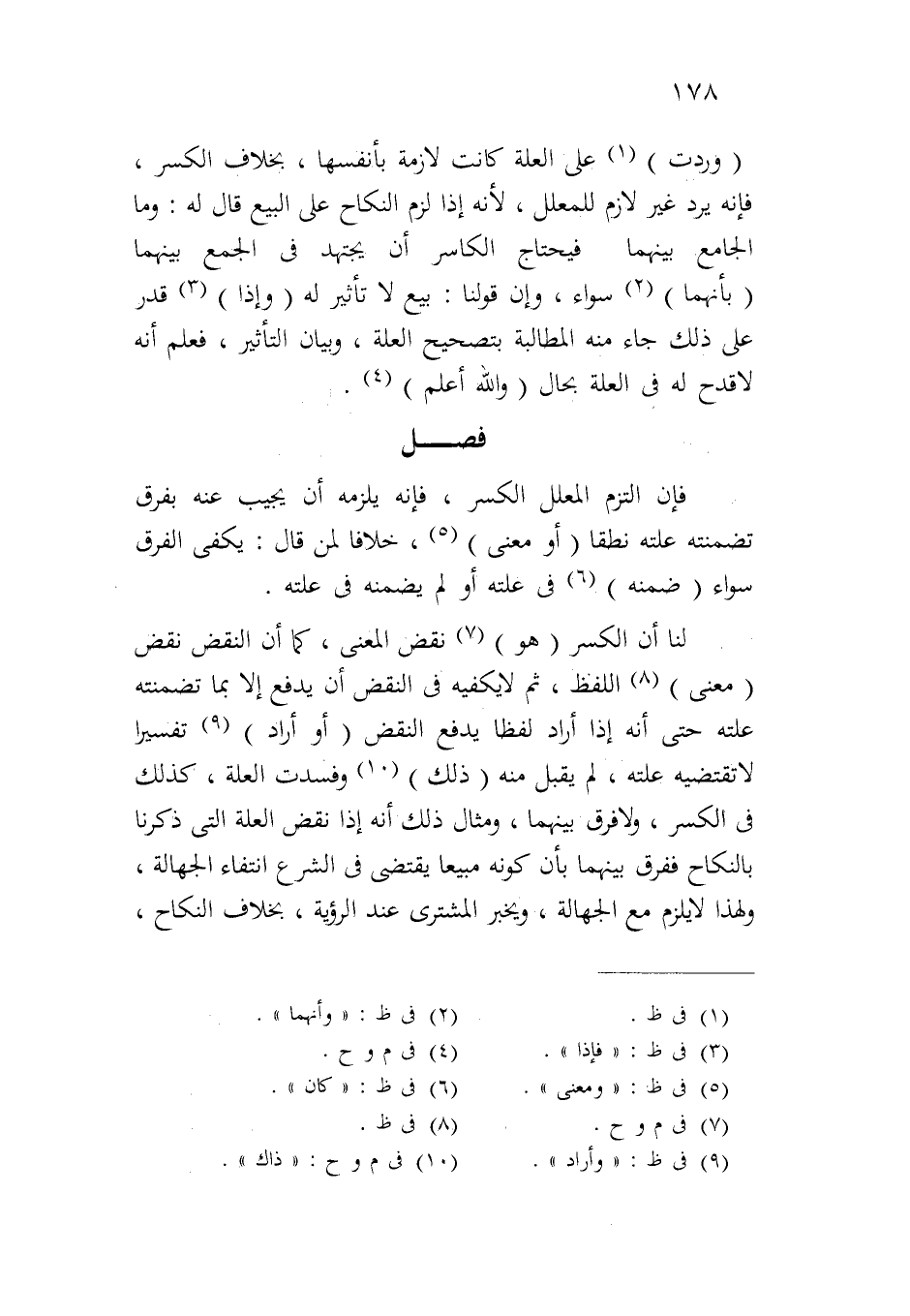 فإن التزم المعلل الكسر، فإنه يلزمه أن يجيب عنه يفرق تضمنته علته نطقاً (أو معنى)، خلافاً لمن قال: يكفي الفرق سواء (ضمنه) في علته أو لم يضمنه في علته.