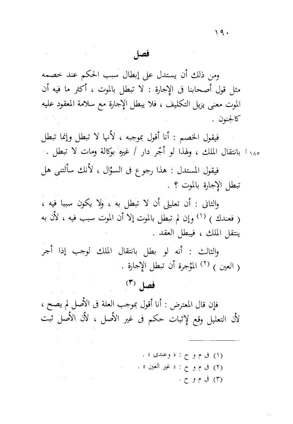 ومن ذلك أن يستدل على إبطال سبب الحكم عند خصمه مثل قول أصحابنا في الإجارة: لا تبطل بالموت، أكثر ما فيه أن الموت معنى يزيل التكليف، فلا يبطل الإجارة مع سلامة المعقود عليه كالجنون.