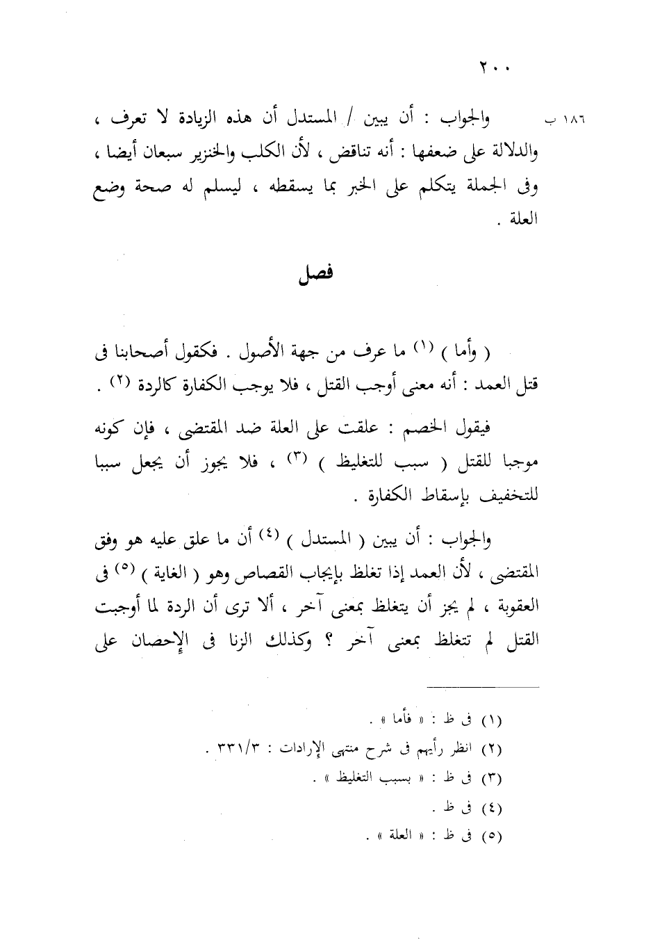 والجواب: أن يبين (المستدل) أن ما علق عليه هو وفق المقتضى، لأن العمد إذا تغلظ بإيجاب القصاص وهو (الغاية) في العقوبة، لم يجز أن يتغلظ بمعنى آخر، ألا ترى أن الردة لما أوجبت القتل لم تتغلظ بمعنى آخر؟ وكذلك الزنا في الإحصان على