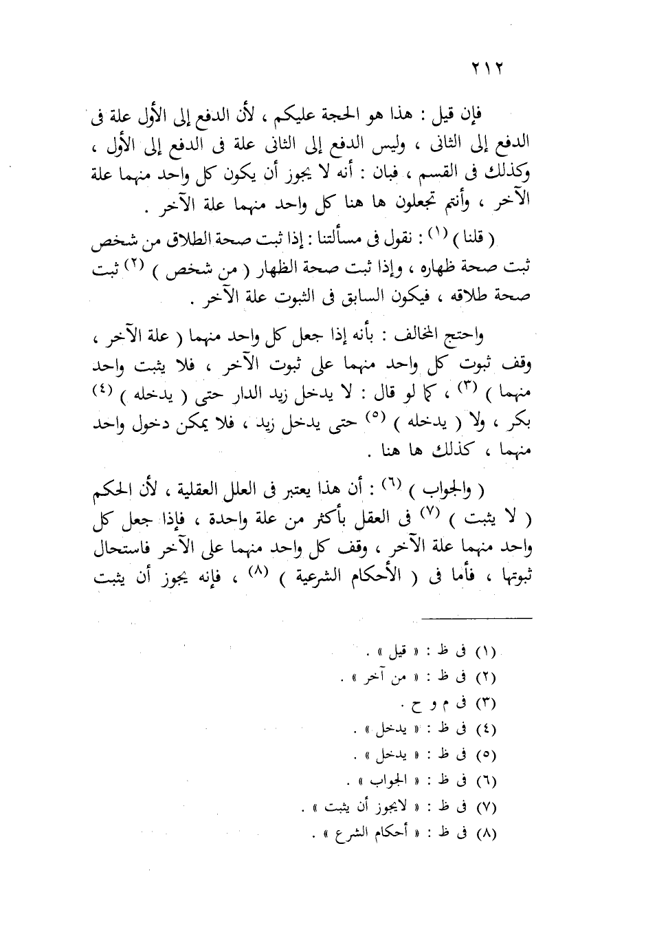 (قلنا): نقول في مسألتنا: إذا ثبت صحة الطلاق من شخص ثبت صحة ظهاره، وإذا ثبت صحة الظهار (من شخص) ثبت صحة طلاقه، فيكون السابق في الثبوت علة الآخر.