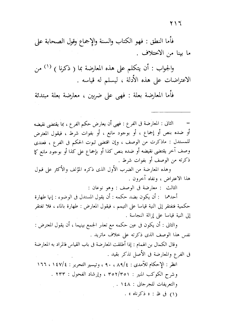 فأما المعارضة بعلة: فهي على ضربين، معارضة بعلة مبتدئة
