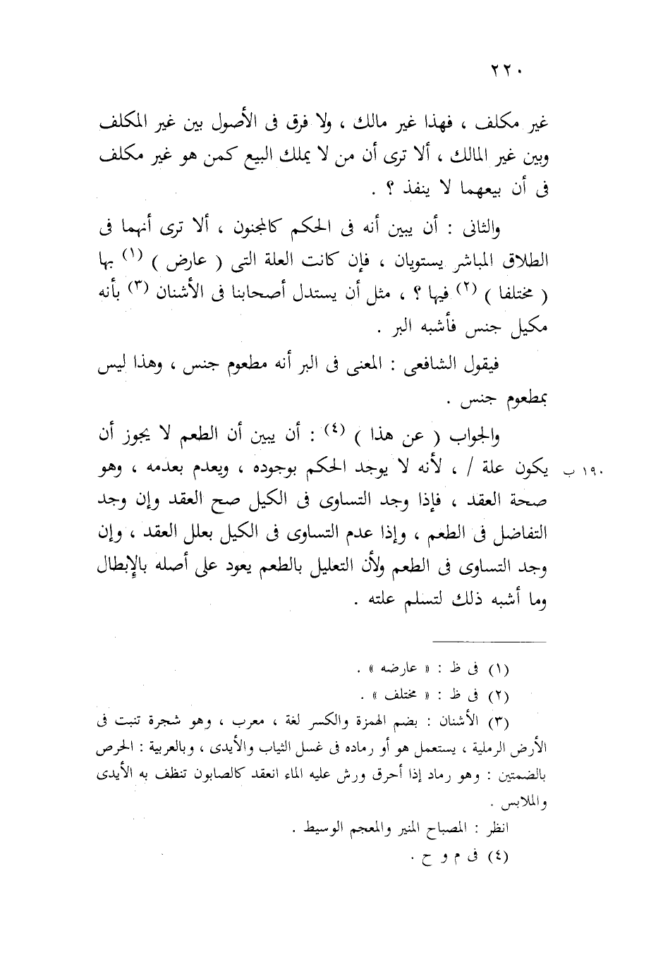 والثاني: أن يبين أنه في الحكم كالمجنون، ألا ترى أنهما في الطلاق المباشر يستويان، فإن كانت العلة التي (عارض) بها (مختلفاً) فيها؟، مثل أن يستدل أصحابنا في الأشنان بأنه مكيل جنس فأشبه البر.