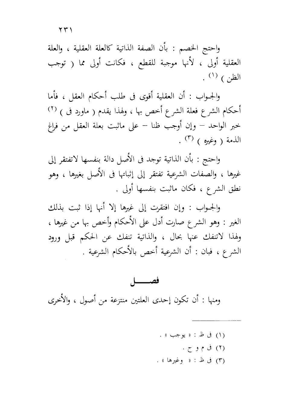واحتج الخصم: بأن الصفة الذاتية كالعلة العقلية، والعلة العقلية أولى، لأنها موجبة للقطع، فكانت أولى مما (توجب الظن).