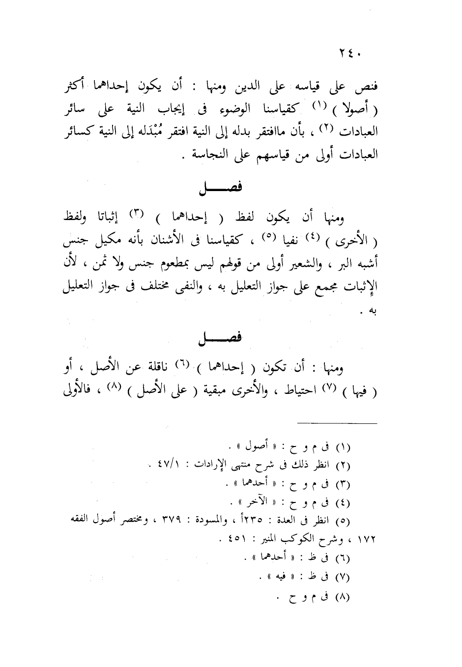 فنص على قياسه على الدين ومنها: أن يكون إحداهما أكثر (أصولاً) كقياسنا الوضوء في إيجاب النية على سائر العبادات، بأن ما افتقر بدله إلى النية افتقر مُبدله إلى النية كسائر العبادات أولى من قياسهم على النجاسة.