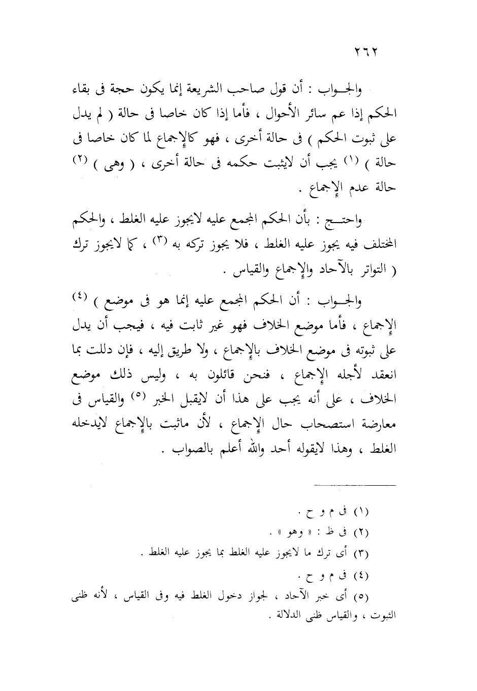 والجواب: أن الحكم المجمع عليه إنما هو في موضع) الإجماع، فأما موضع الخلاف فهو غير ثابت فيه، فيجب أن يدل على ثبوته في موضع الخلاف بالإجماع، ولا طريق إليه، فإن دللت بما انعقد لأجله الإجماع، فنحن قائلون به، وليس ذلك موضع الخلاف، على أنه يجب على هذا أن لا يقبل الخبر والقياس في معارضة استصحاب حال الإجماع، لأن ما ثبت بالإجماع لا يدخله الغلط، وهذا لا يقوله أحد والله أعلم بالصواب.