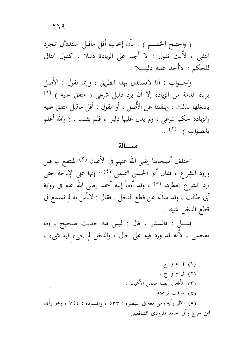 والجواب: أنا لا نستدل بهذا الطريق، وإنما نقول: الأصل براءة الذمة من الزيادة إلا أن يرد دليل شرعي (متفق عليه) يشغلها بذلك، وينقلنا عن الأصل، أو نقول: أقل ما قيل متفق عليه والزيادة حكم شرعي، ولم يدل عليها دليل، فلم يثبت. (والله أعلم بالصواب).