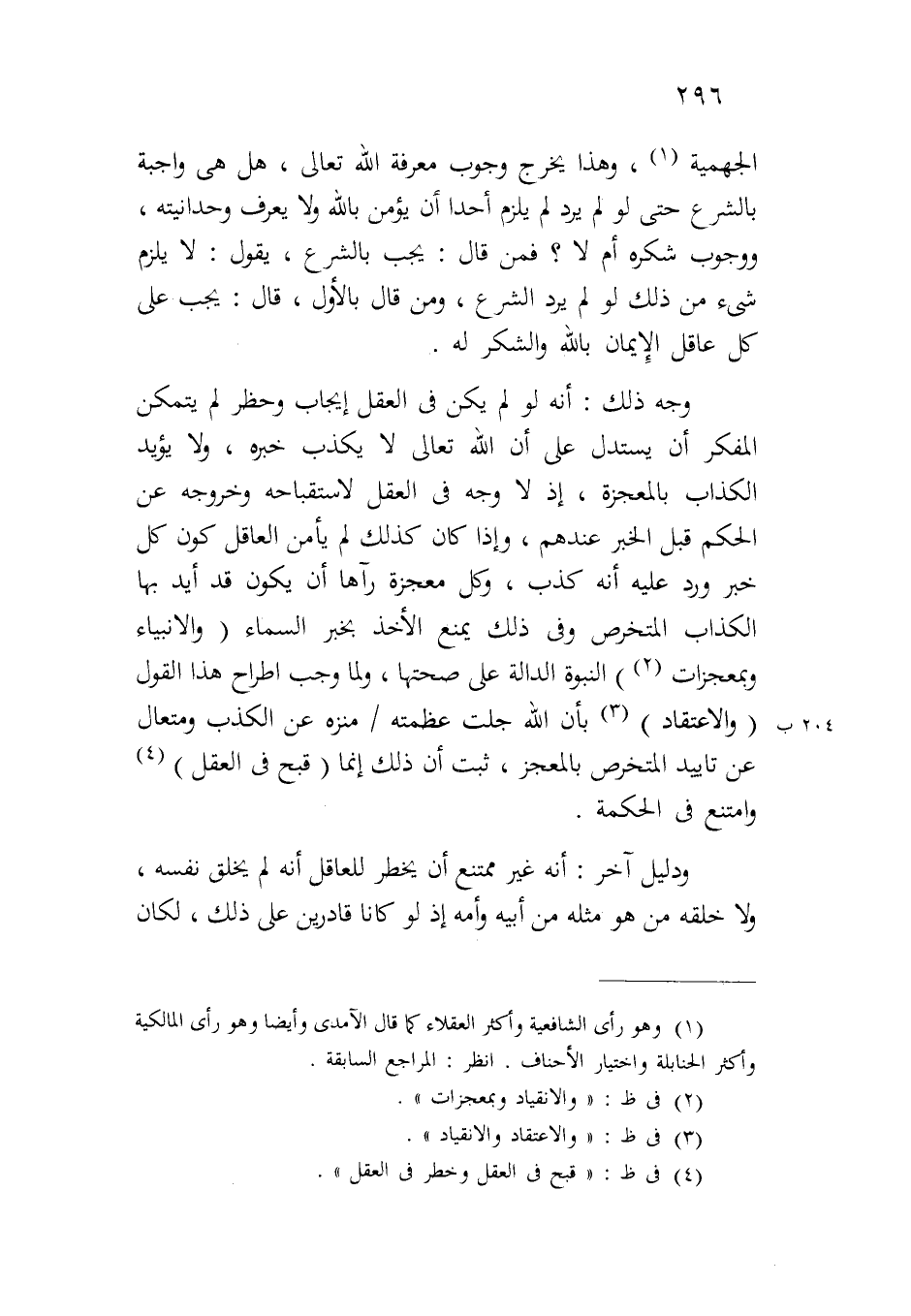 وجه ذلك: أنه لو لم يكن في العقل إيجاب وحظر لم يتمكن المفكر أن يستدل على أن الله تعالى لا يكذب خبره، ولا يؤيد الكذاب بالمعجزة، إذ لا وجه في العقل لاستقباحه وخروجه عن الحكم قبل الخبر عندهم، وإذا كان كذلك لم يأمن العاقل كون كل خبر ورد عليه أنه كذب، وكل معجزة رآها أن يكون قد أيد بها الكذاب المتخرص وفي ذلك يمنع الأخذ بخبر السماء (والأنبياء وبمعجزات) النبوة الدالة على صحتها، ولما وجب اطراح هذا القول (والاعتقاد) بأن الله جلت عظمته/٢٠٤ ب منزه عن الكذب ومتعال عن تأييد المتخرص بالمعجز، ثبت أن ذلك إنما (قبح في العقل) وامتنع في الحكمة.