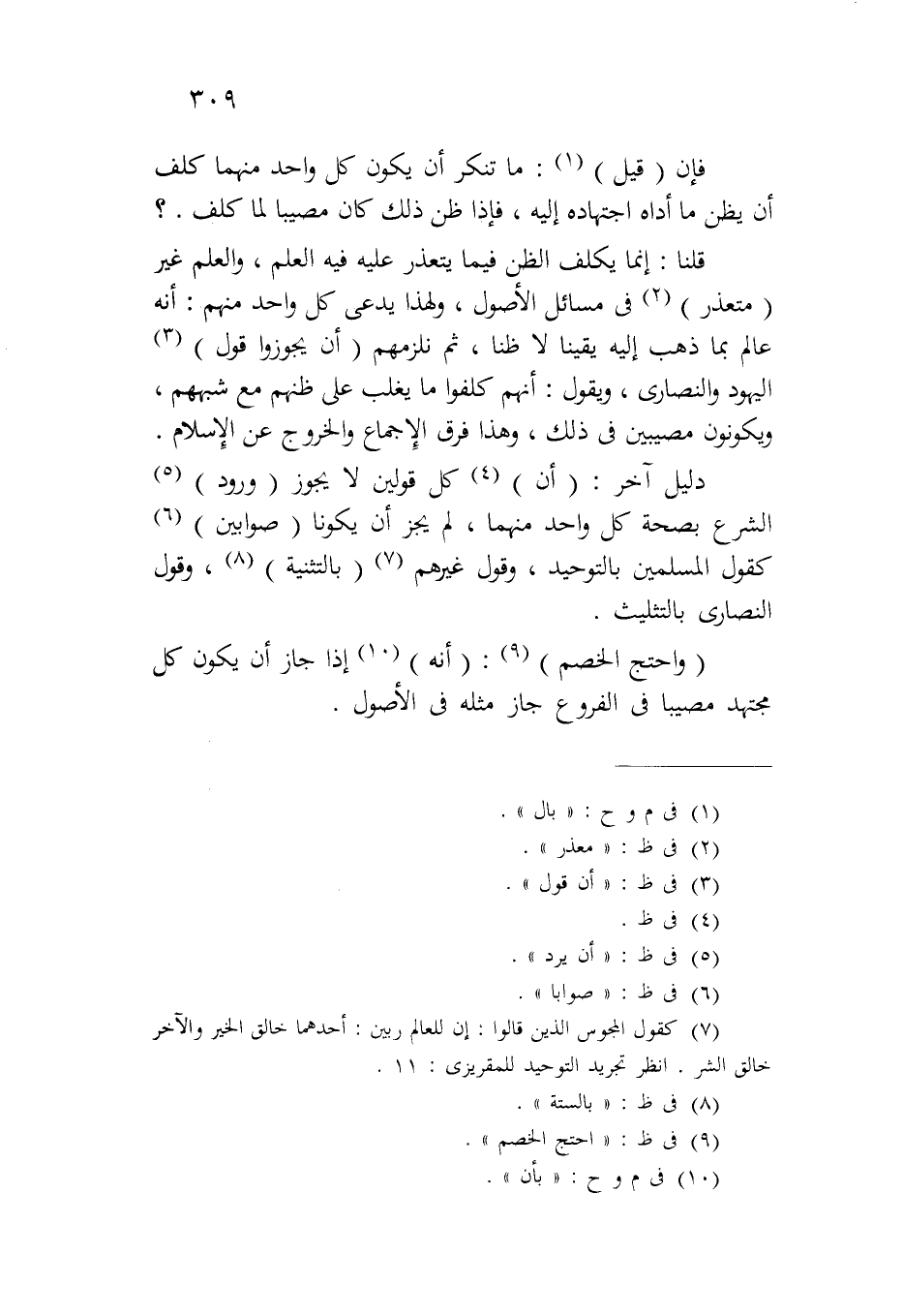 قلنا: إنما يكلف الظن فيما يتعذر عليه فيه العلم، والعلم غير (متعذر) في مسائل الأصول، ولهذا يدعي كل واحد منهم: أنه عالم بما ذهب إليه يقيناً لا ظناً، ثم نلزمهم (أن يجوزوا قول) اليهود والنصارى، ويقول: أنهم كلفوا ما يغلب على ظنهم مع شبههم، ويكونون مصيبين في ذلك، وهذا فرق الإجماع والخروج عن الإسلام.